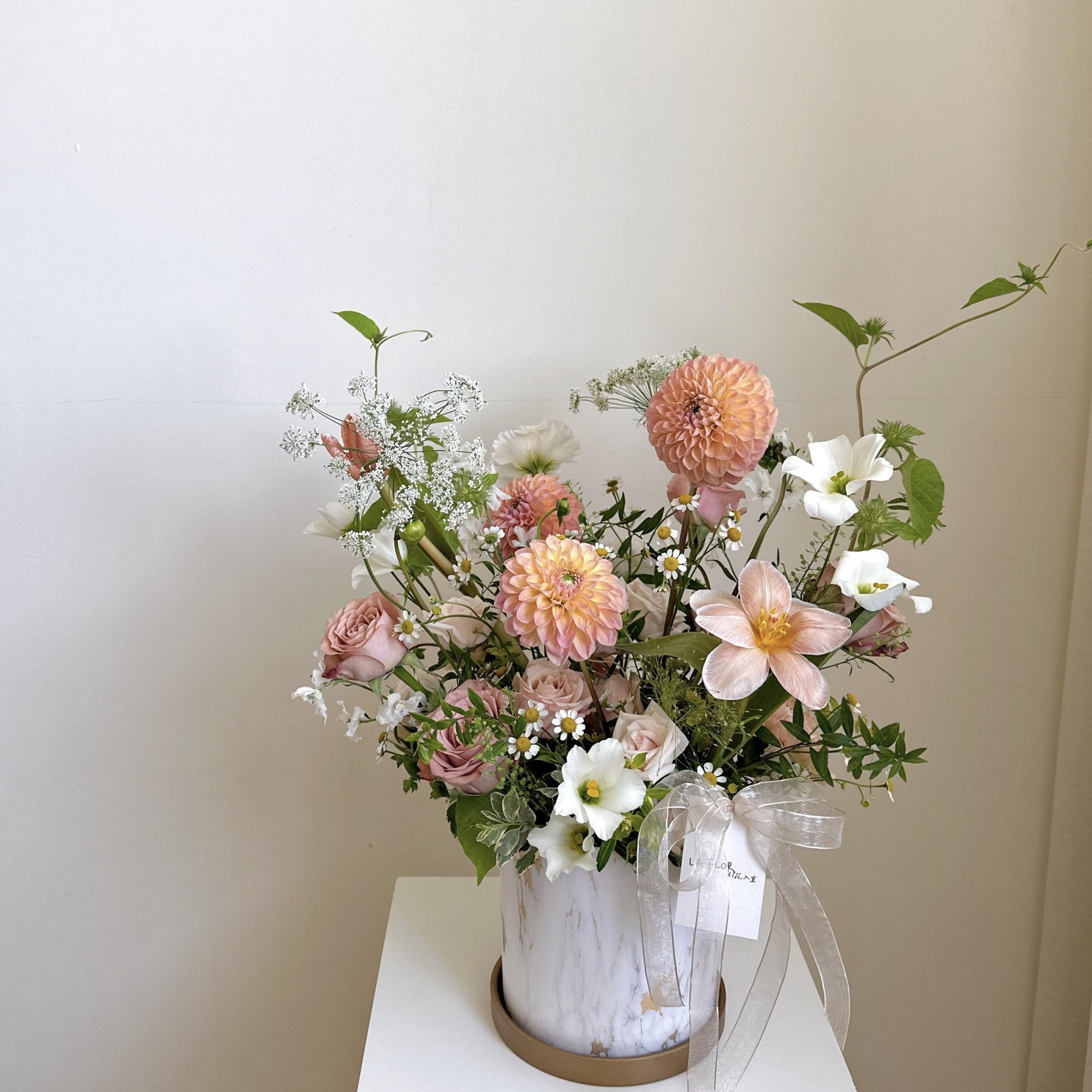 配花與葉材皆依當季花材挑選設計,花材不會跟照片一樣唷!