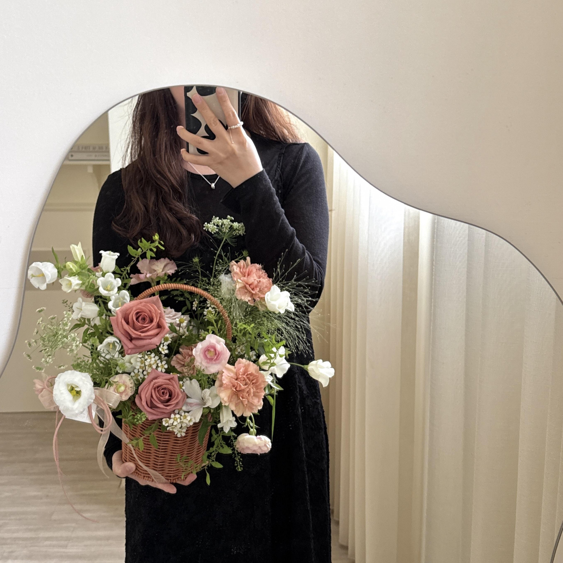 花籃配花與葉材皆依當季花材挑選設計,可挑色系,花材不會跟照片一樣唷!