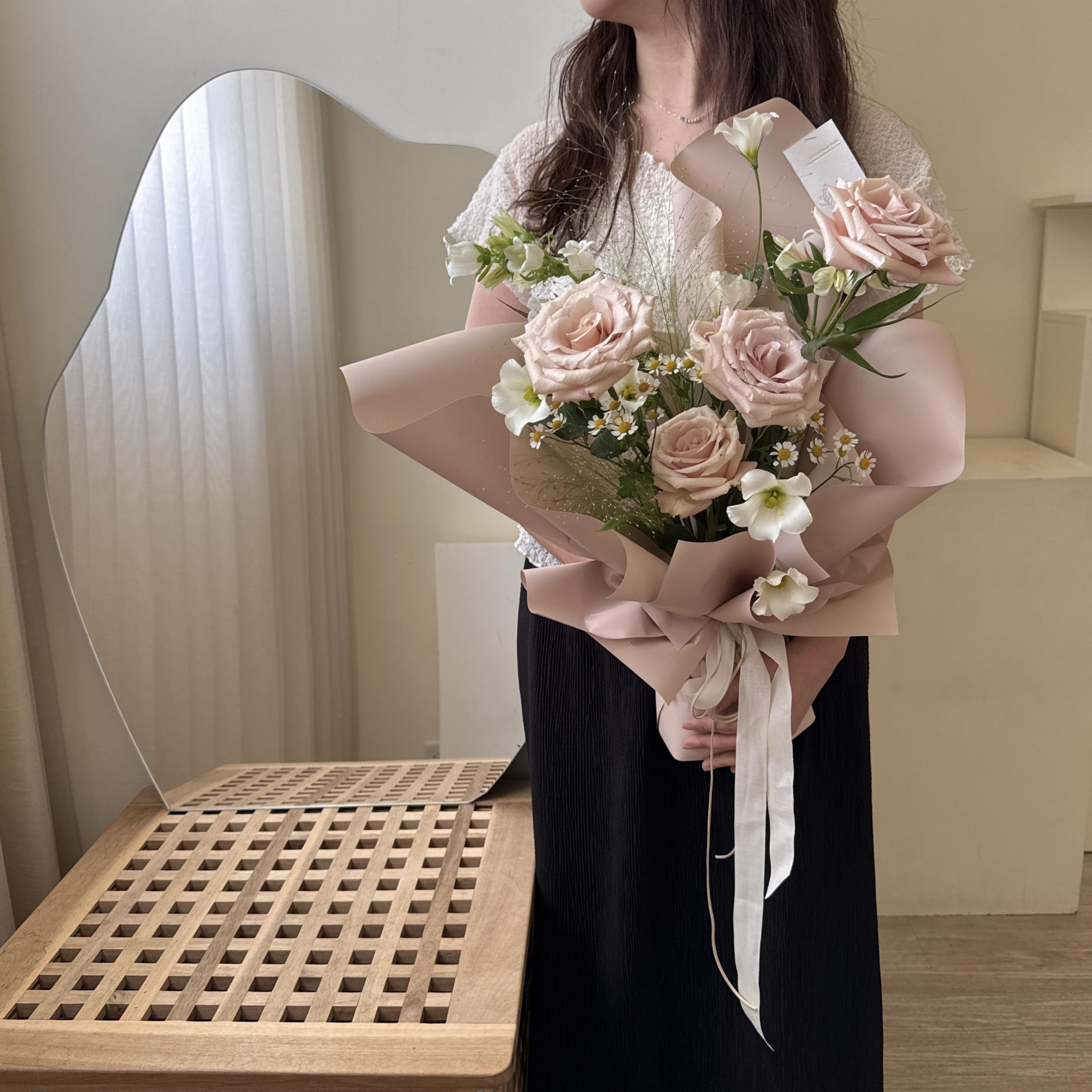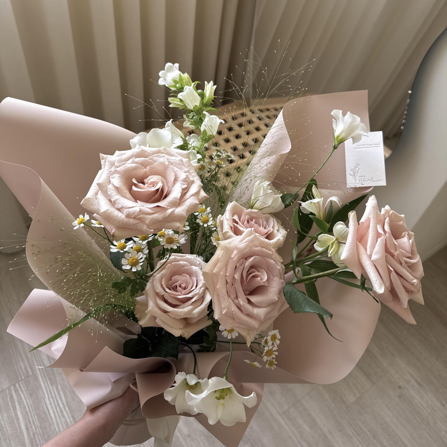 溫柔的淡粉色玫瑰+白色系季節配花,最經典耐看的溫柔氣質款 💐 🤍