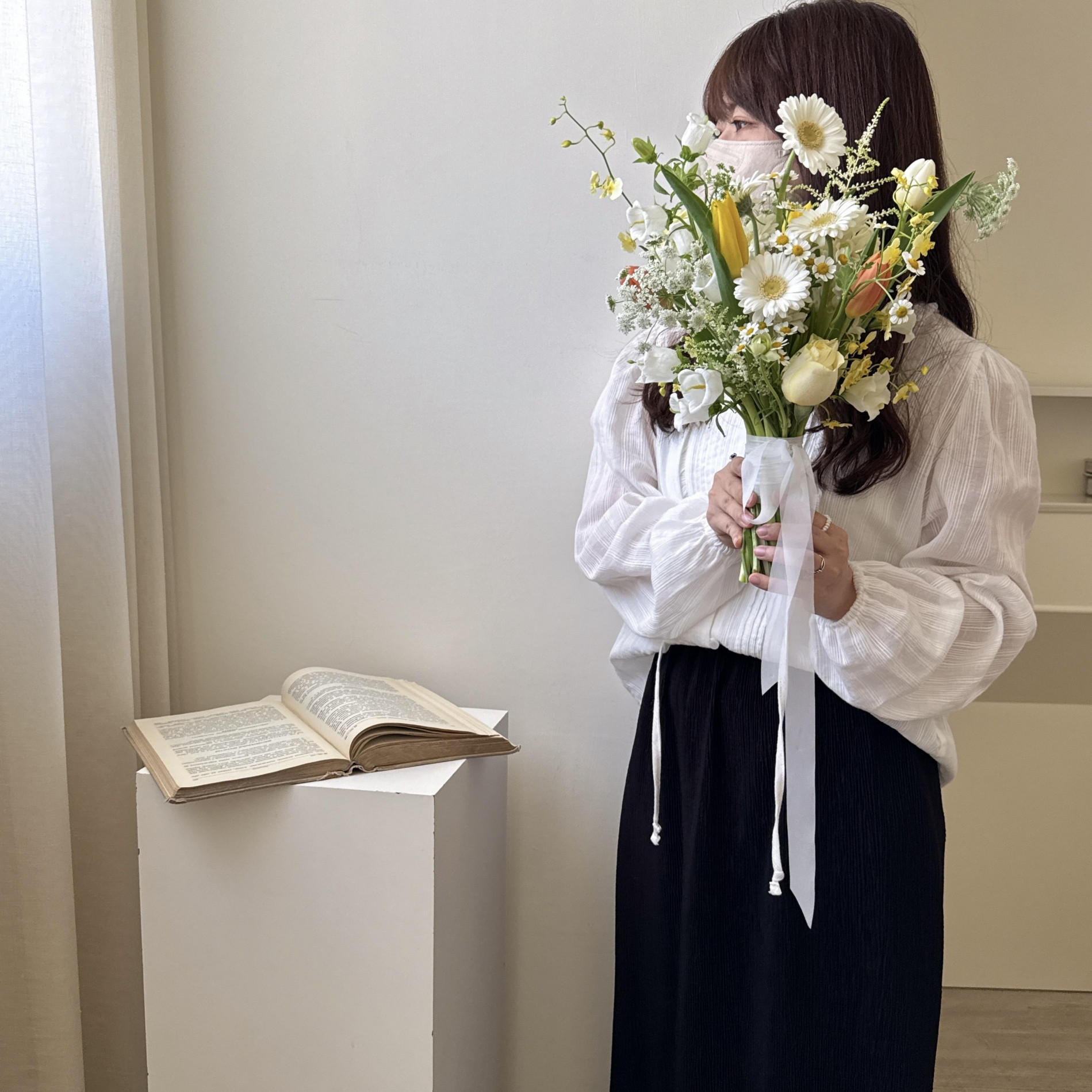 花材:白黃橘鬱金香+季節花材