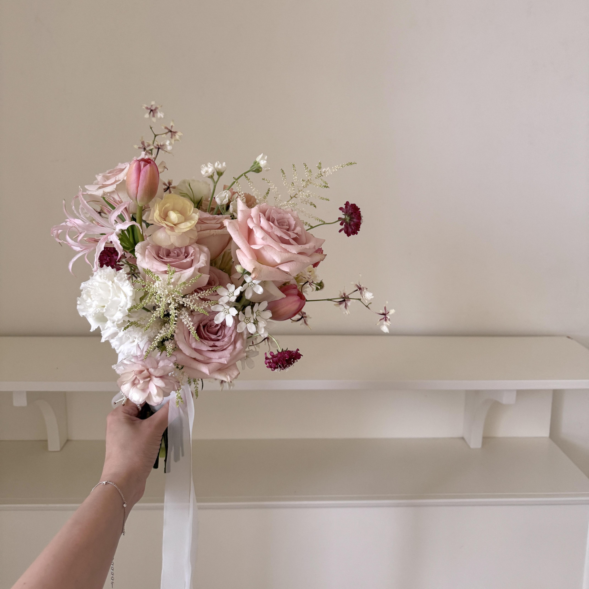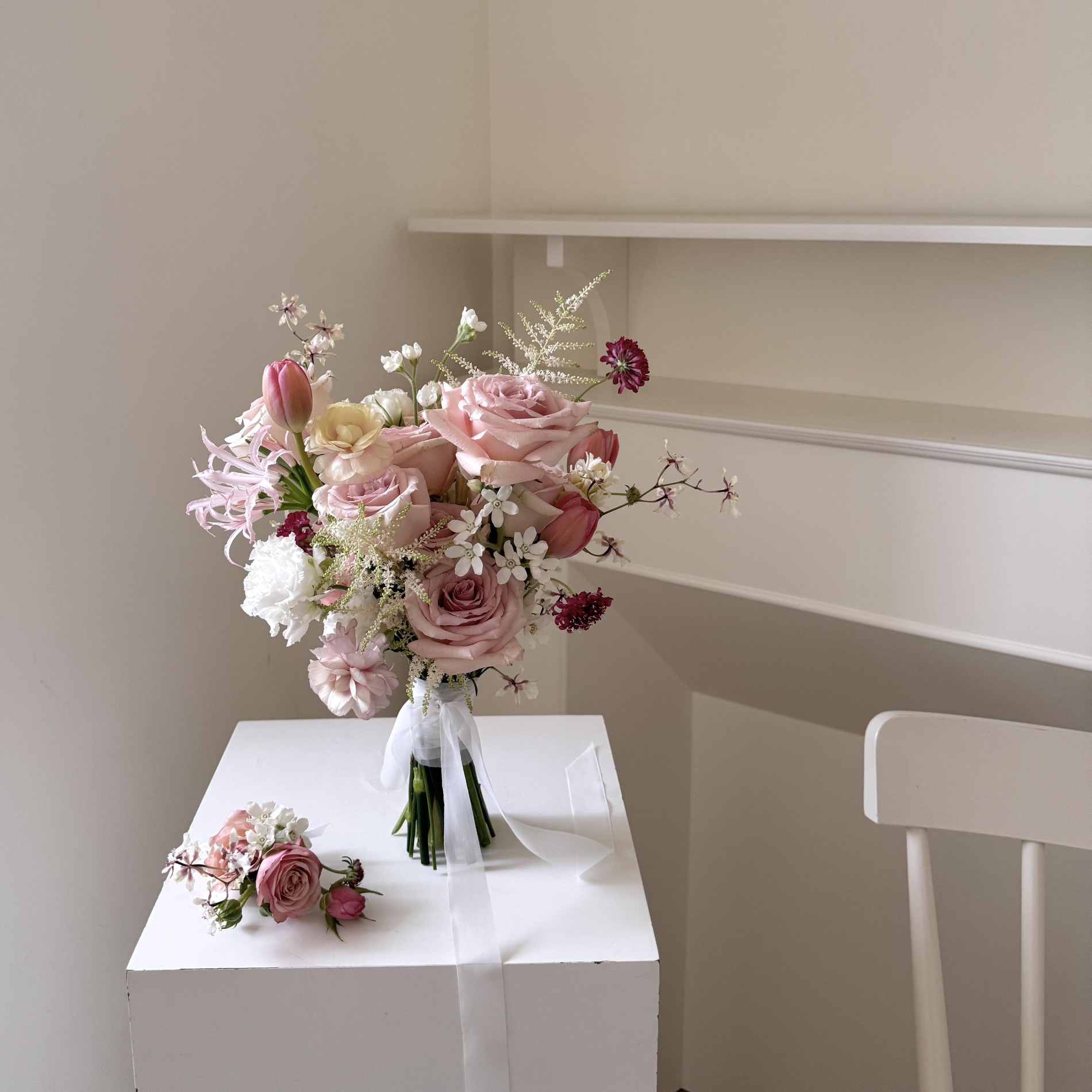 以溫柔粉色系搭配而成的韓系捧花,將愛意靜靜說出口🫶🏻