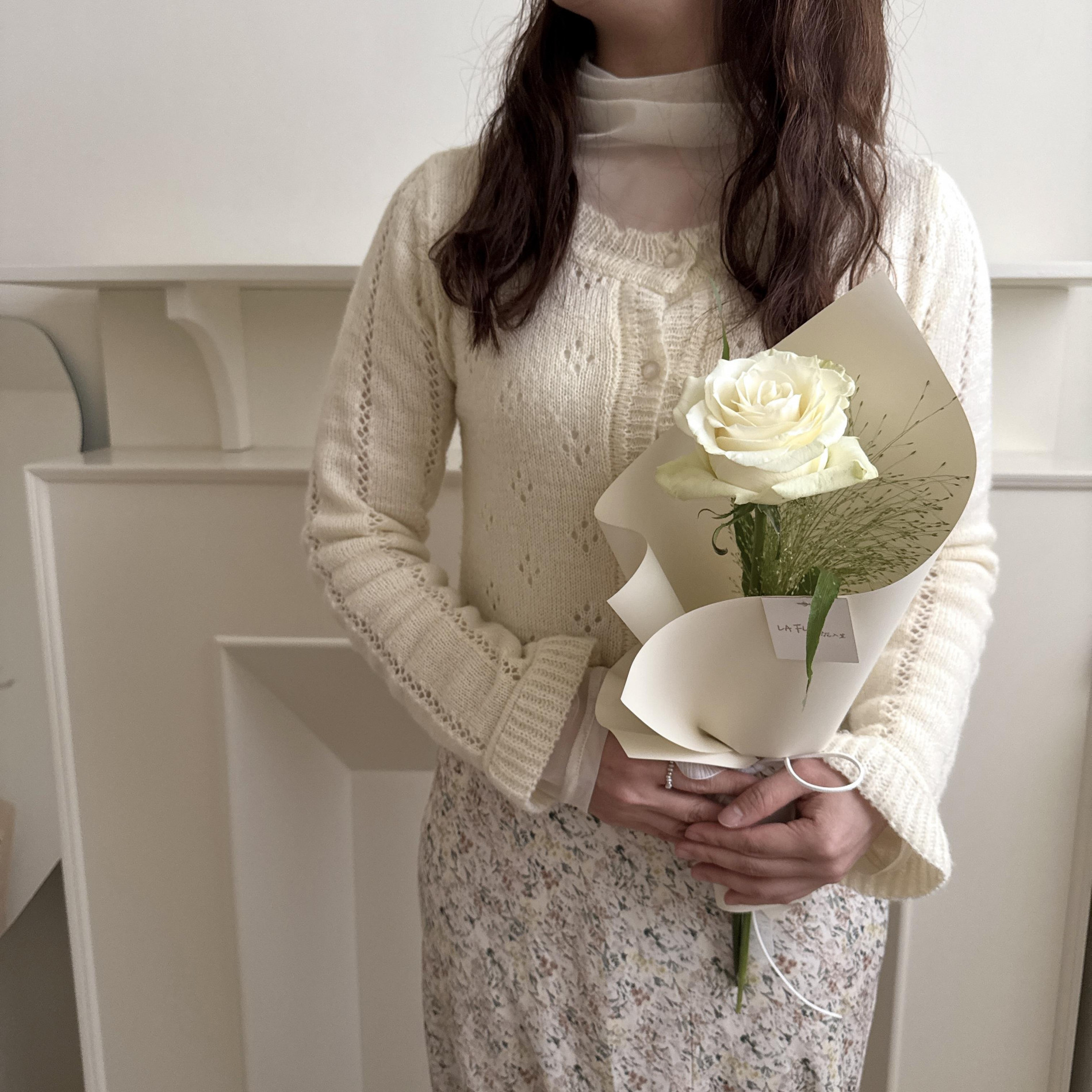 白玫瑰的紀念單支玫瑰花束