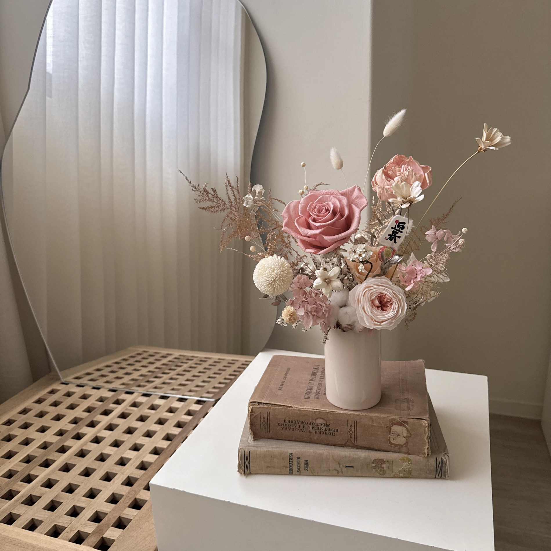 這堂課從加工各種花材和永生花開花開始教大家,以及如何設計出帶LA FLOR風格的韓式桌花,