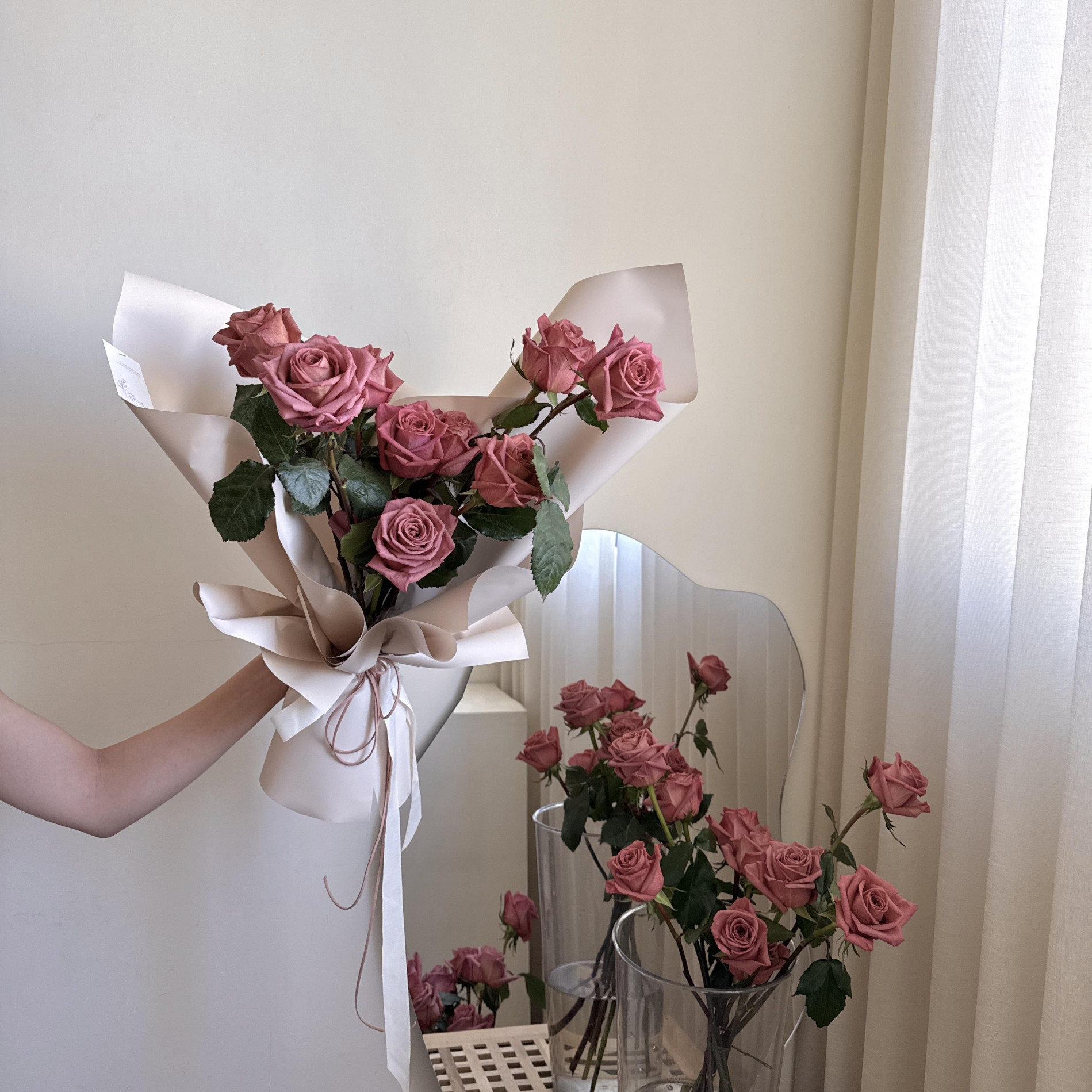 該款玫瑰如當週缺貨將挑選其他粉色系玫瑰替代,玫瑰以外的配花與葉材依當季花材設計,不一定跟照片一樣。