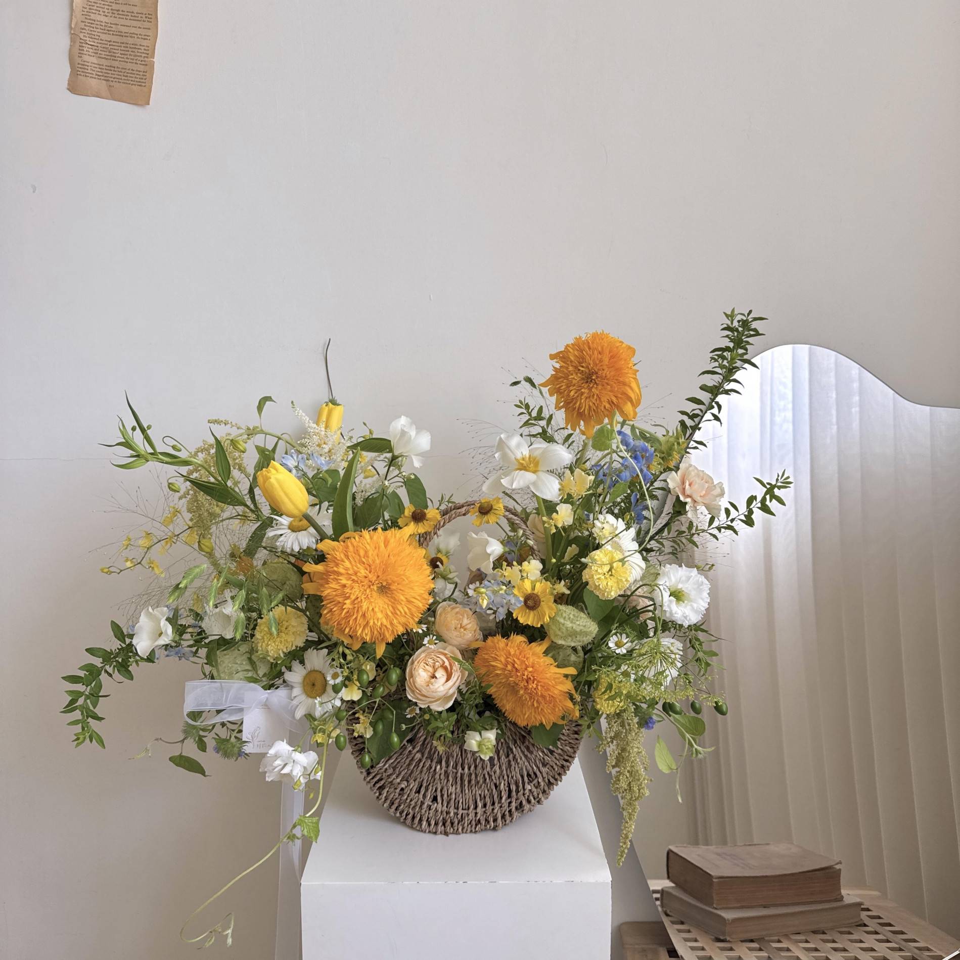 藍黃色系韓式手提花籃 L