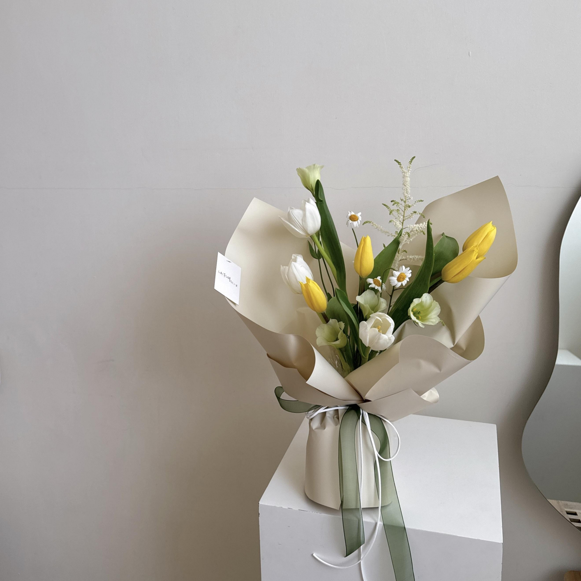 鬱金香以外花材皆依當季花材設計,不一定會跟照片一樣。臨時需求可先詢問當週的花色再下單。