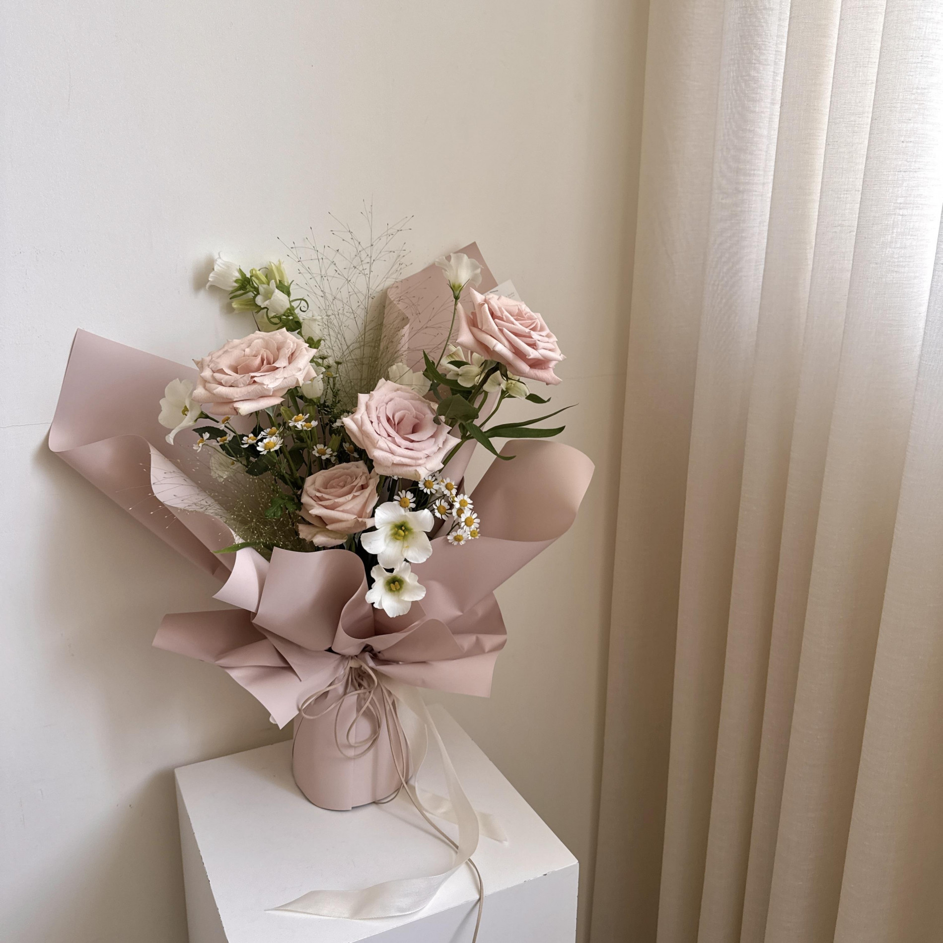 若沒有特別的想法只想買一束花,非常建議可以挑選不挑款花束,由我們挑選當季漂亮花材設計的韓式風格自然輕盈靈動感、空氣感和線條感小花束。