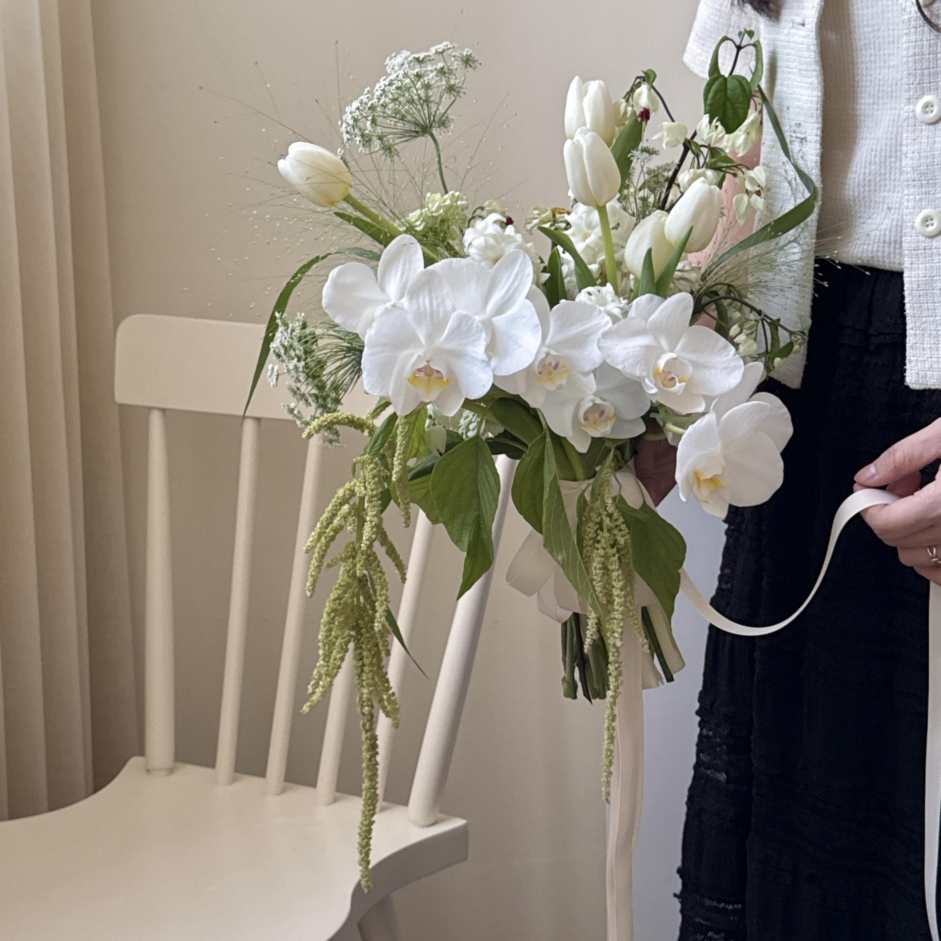 鬱金香及蝴蝶蘭以外花材皆依當季花材設計,不會跟照片一樣。捧花請提早7-14天預訂,如有指定花款可以先私訊Line討論後下單。