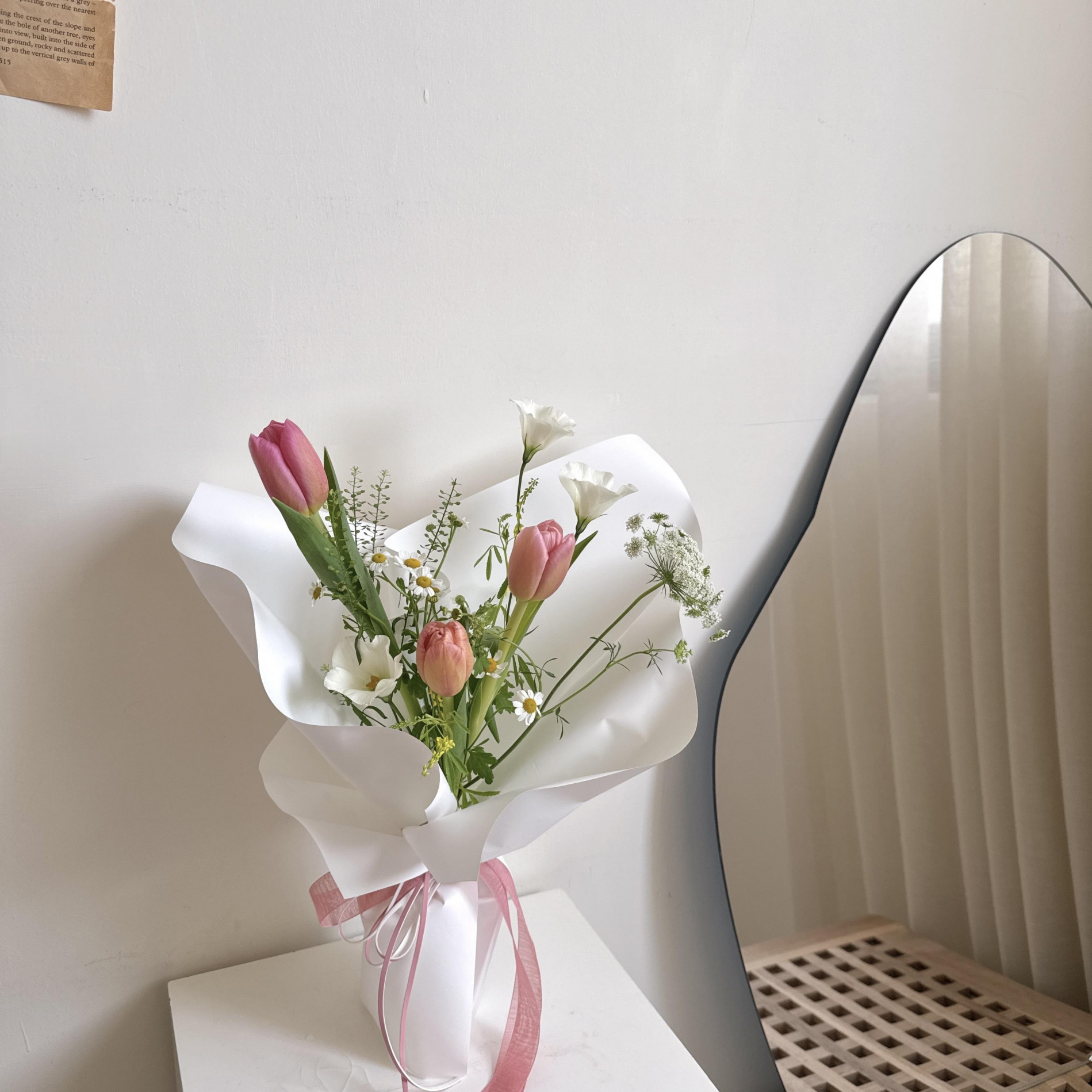 鬱金香以外花材皆依當季花材設計,不一定會跟照片一樣。臨時需求可先詢問當週的花色再下單。