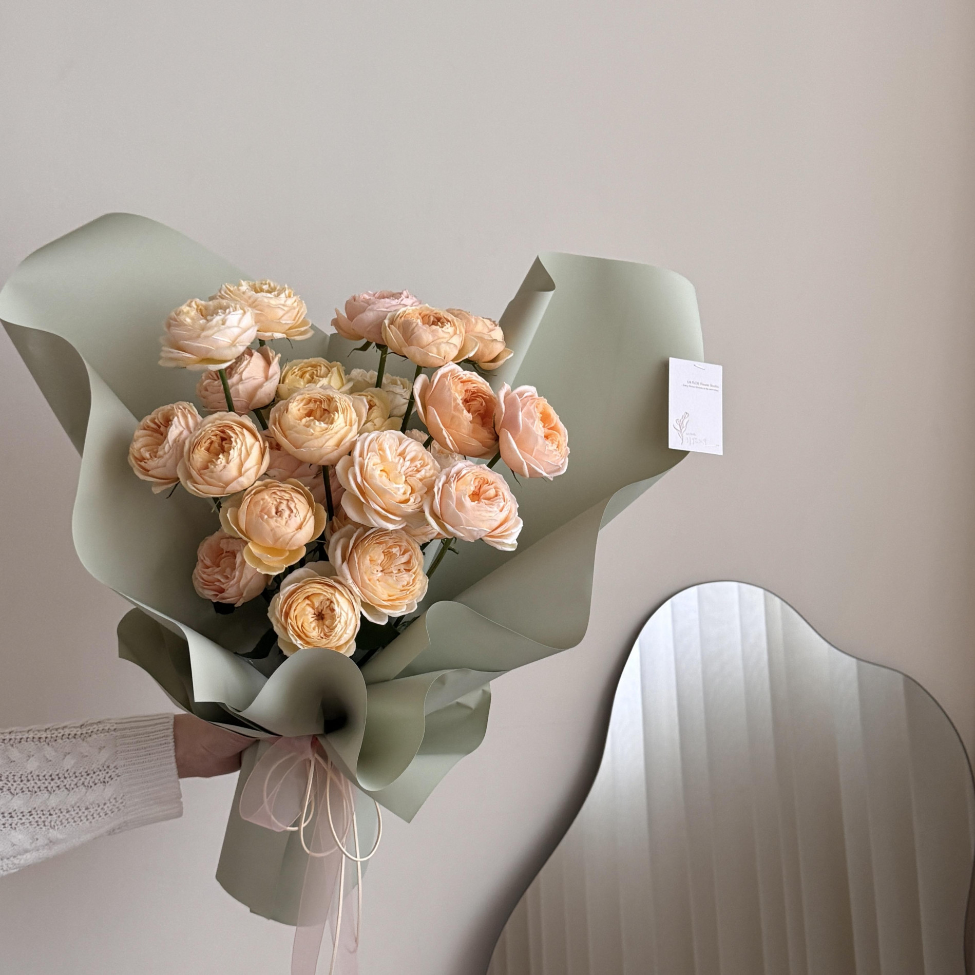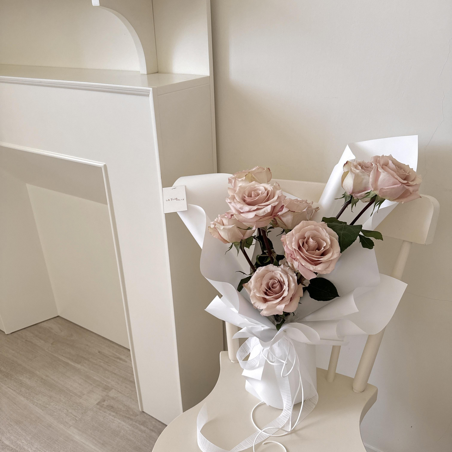 預訂如白玫瑰當週缺貨將改用粉玫瑰替代,設計整體粉白色系。玫瑰以外的配花與葉材依當季花材設計,不一定跟照片一樣。