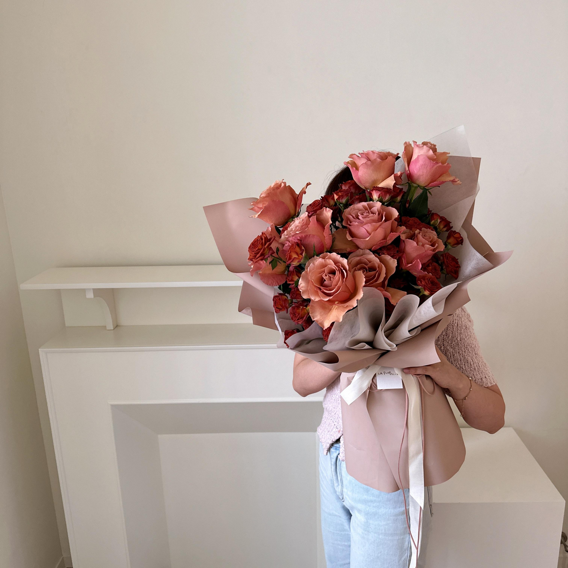 單支花束依當週花材販售,請於當週週一下午詢問,臨時的需求請先官方Line詢問。玫瑰以外的配花與葉材依當季花材設計,不一定跟照片一樣。