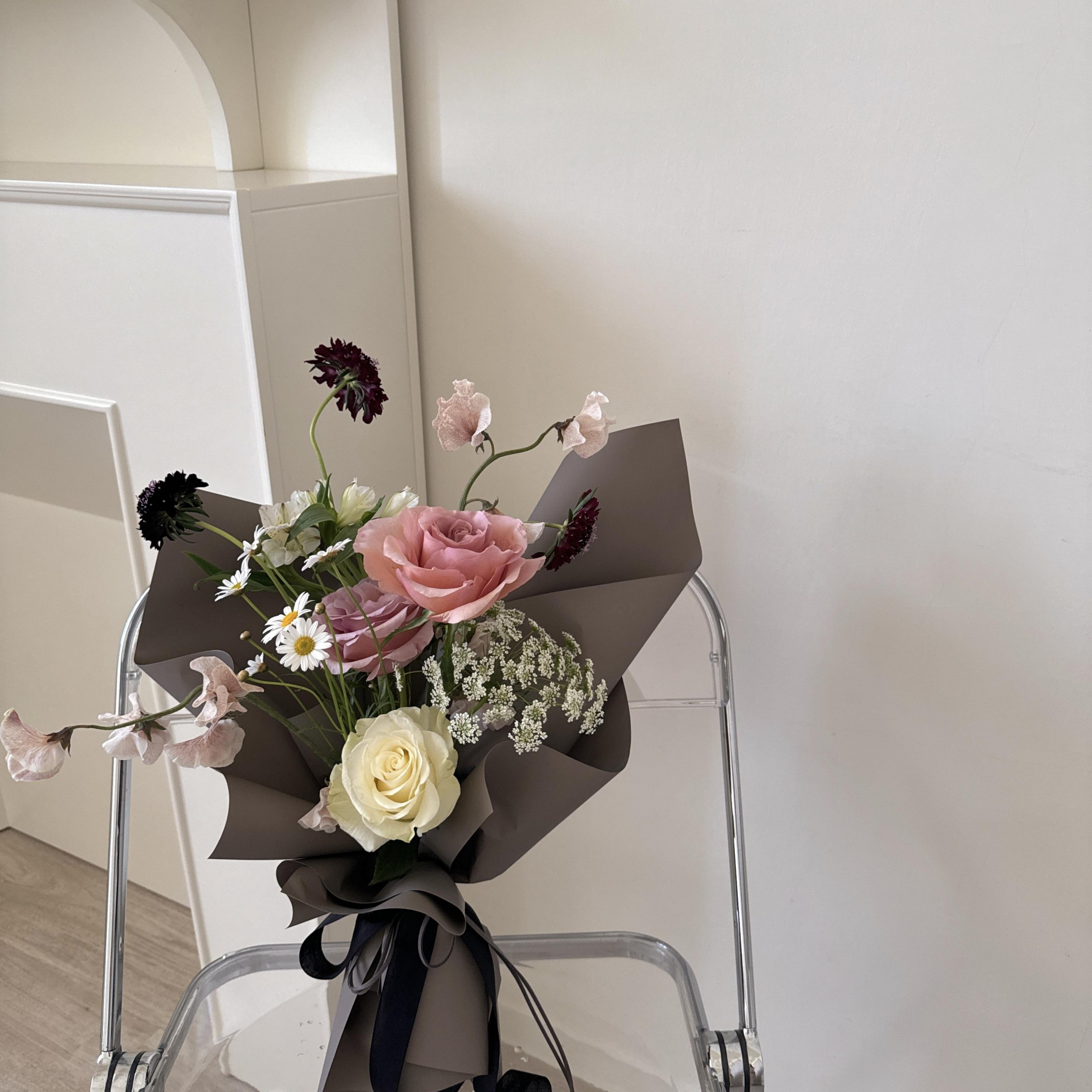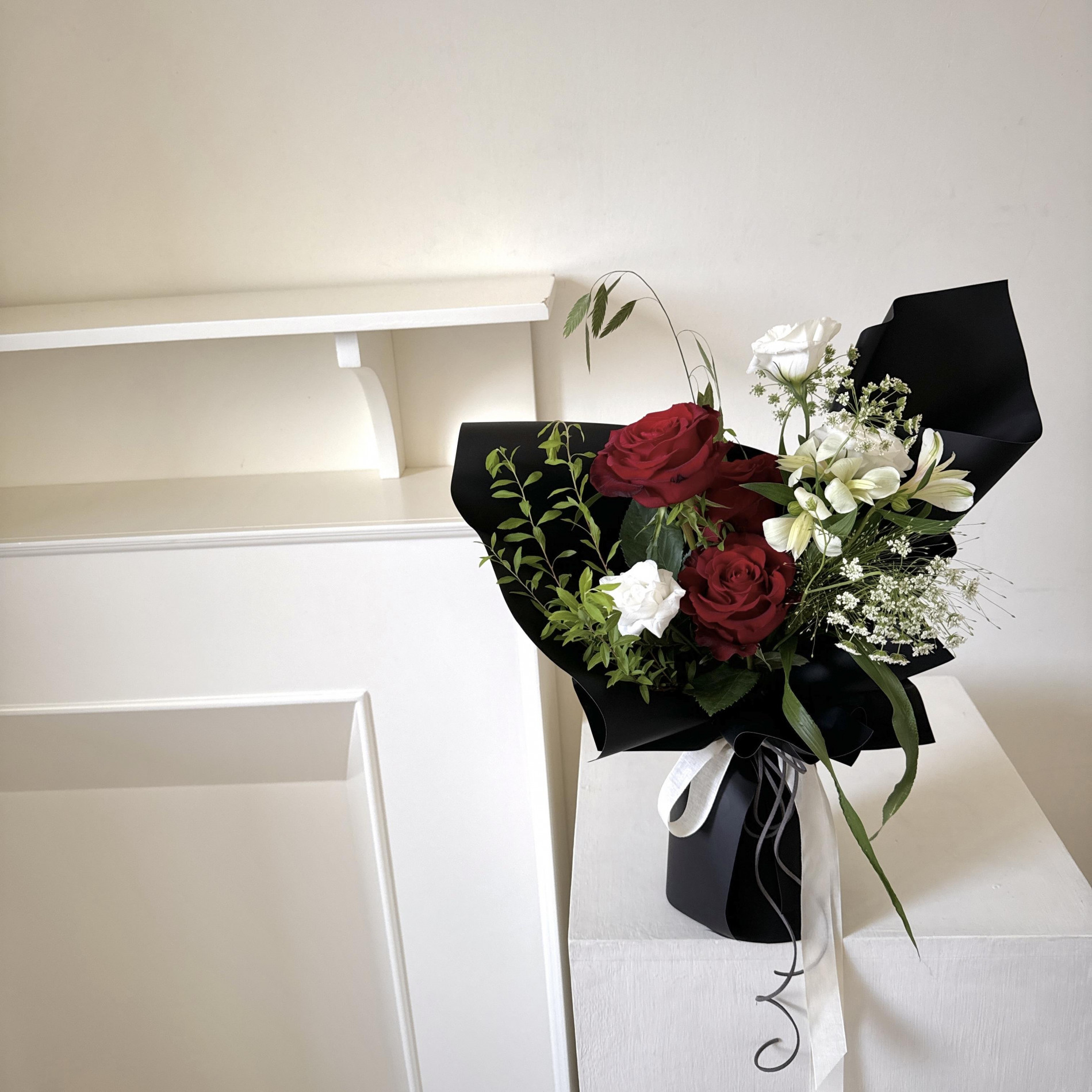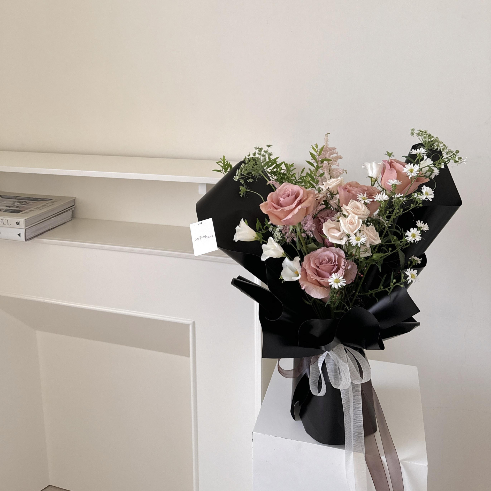 花材將挑選當季花材設計適合黑包裝的花,不會跟照片一樣,如有希望的色系可私訊官方Line討論。