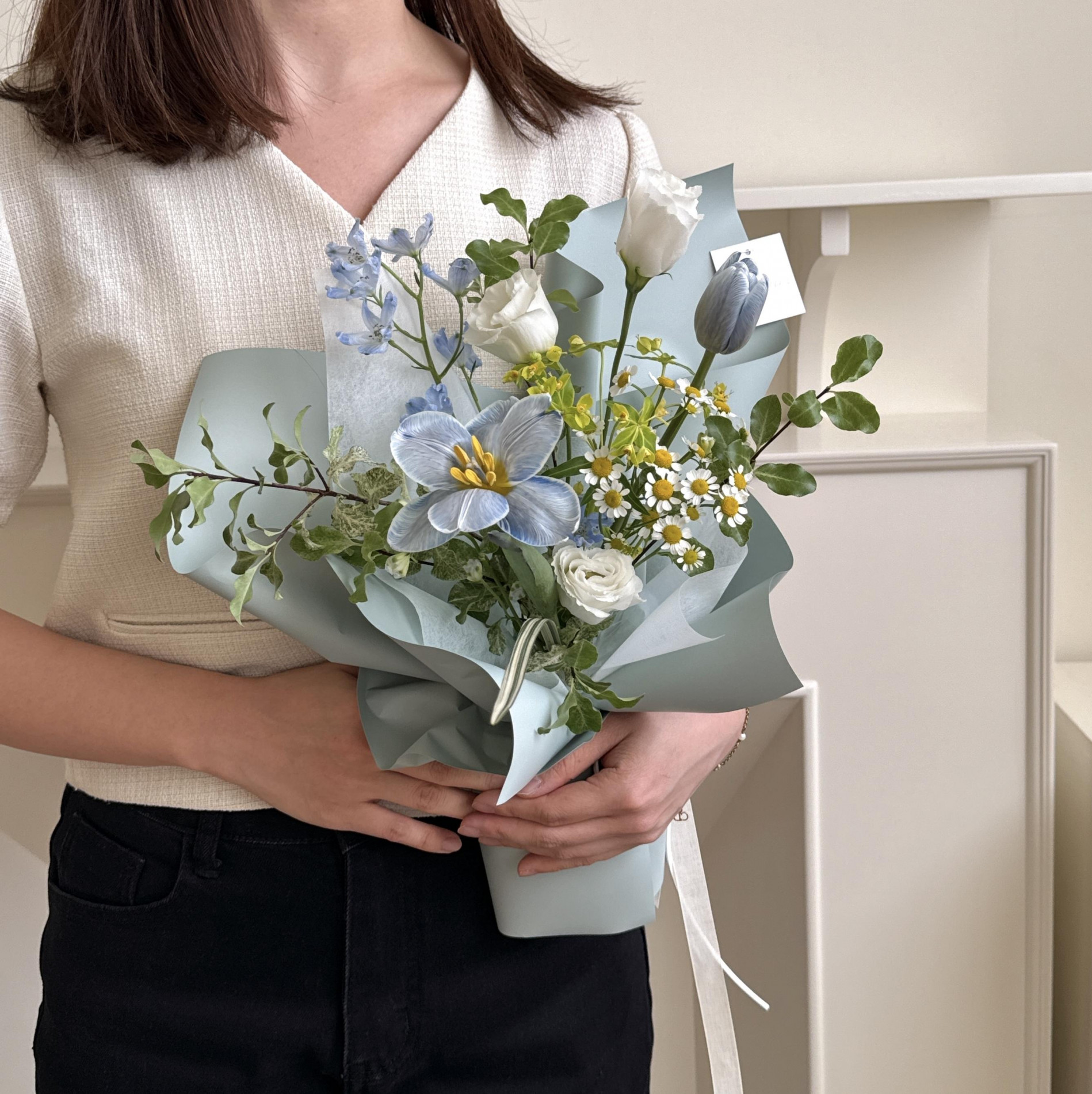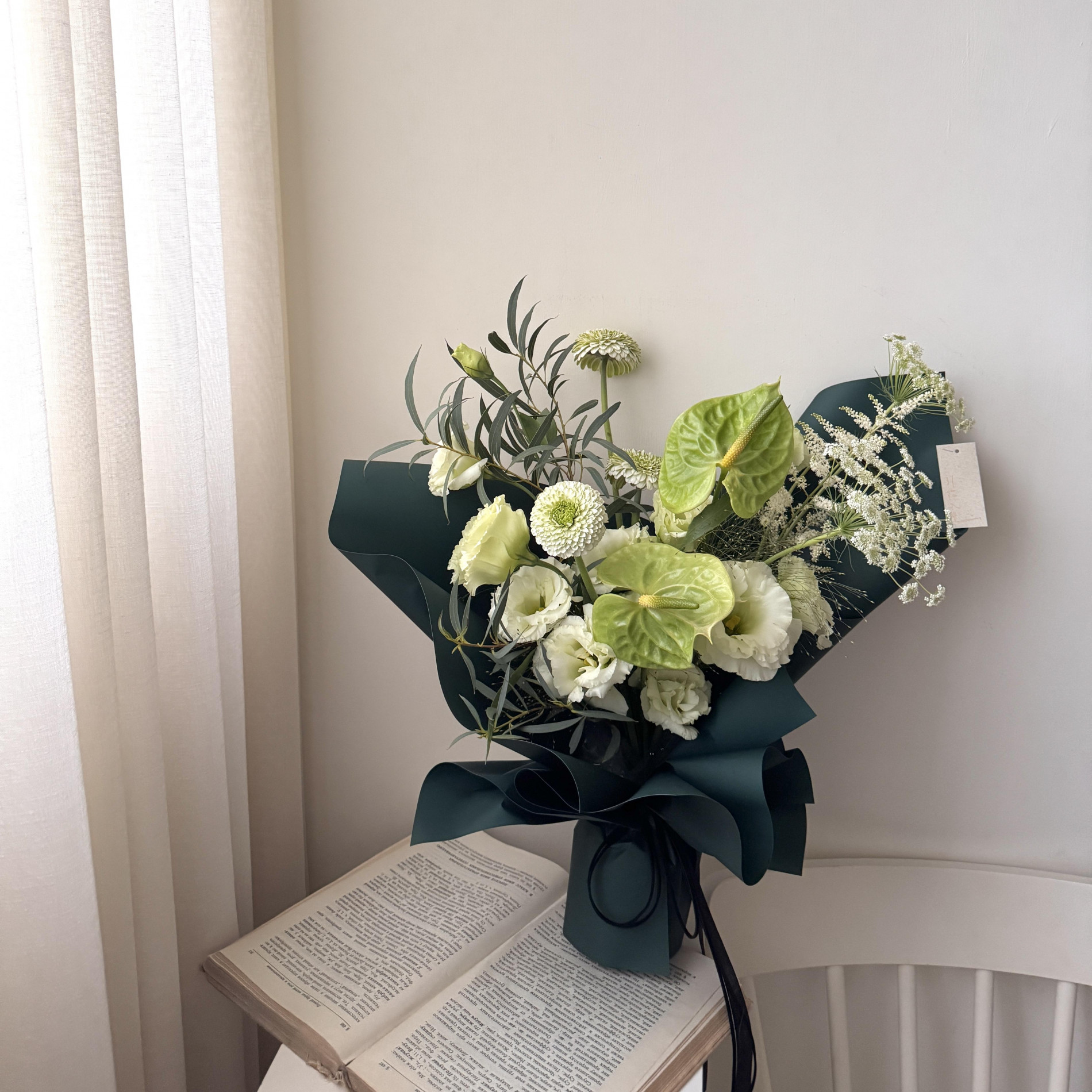鬱金香顏色深淺和花朵大小每批皆不盡相同,海芋和鬱金香以外花材如有缺貨將挑選當季花材替代,不會跟照片完全一樣。