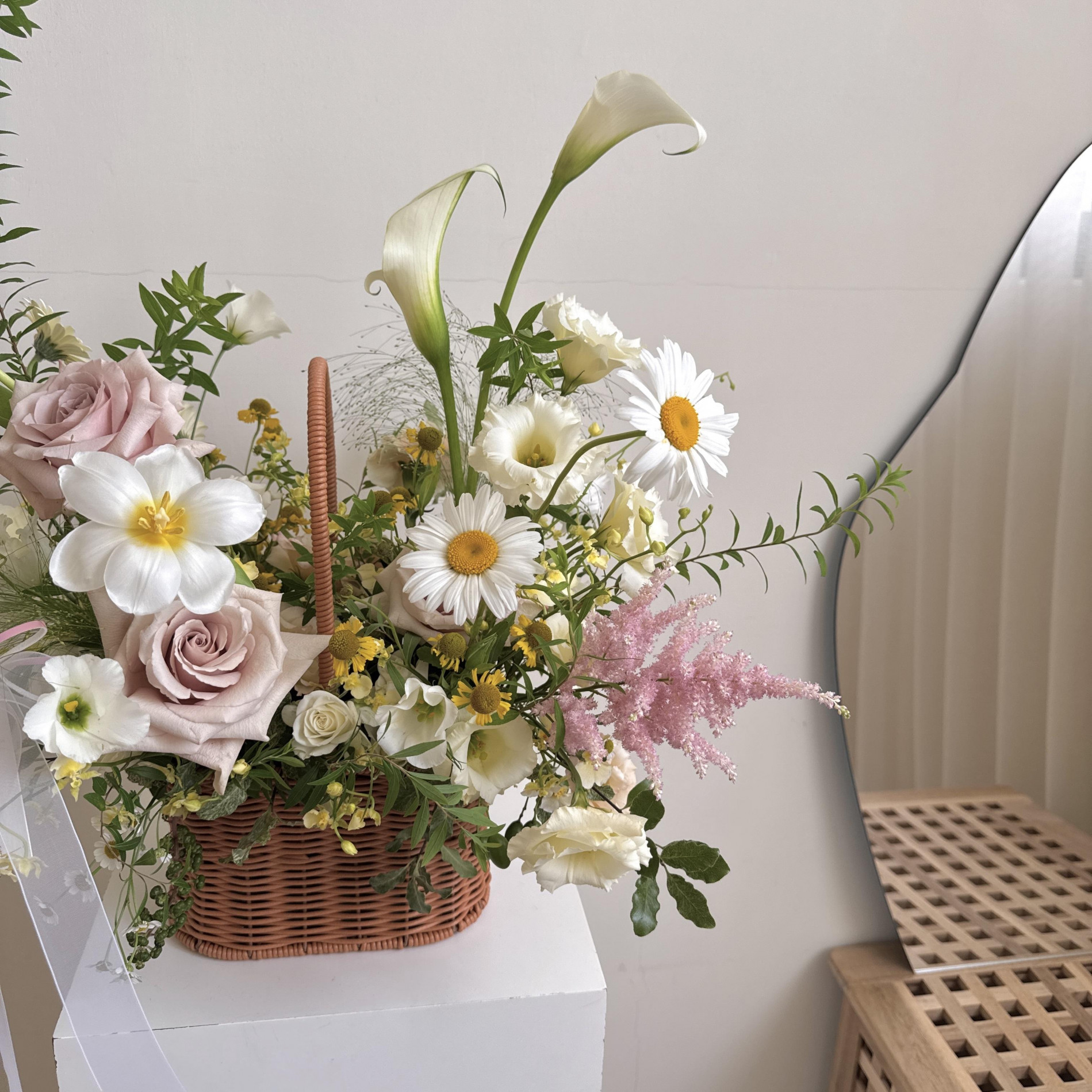 韓式風格手提花籃,適合開幕、新居、升遷、野餐和生日禮!