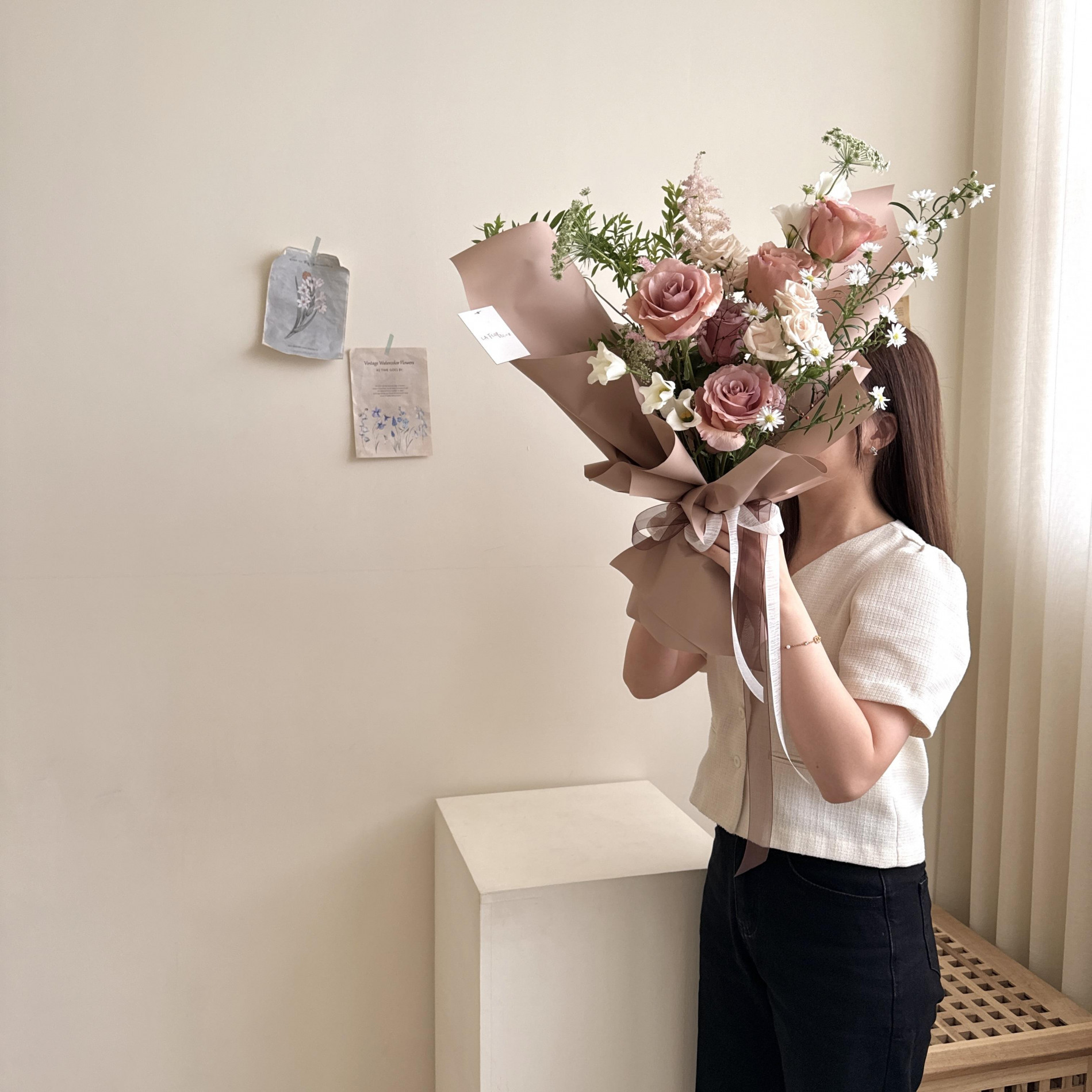 / 工作室自取若請人代領請報訂購人的姓名。如臨時狀況請快遞拿花,除小尺寸的小花束之外皆要用汽車配送,並請上樓至工作室門口拿取,自行安排快遞如運送過程中有損耗無法售後處理