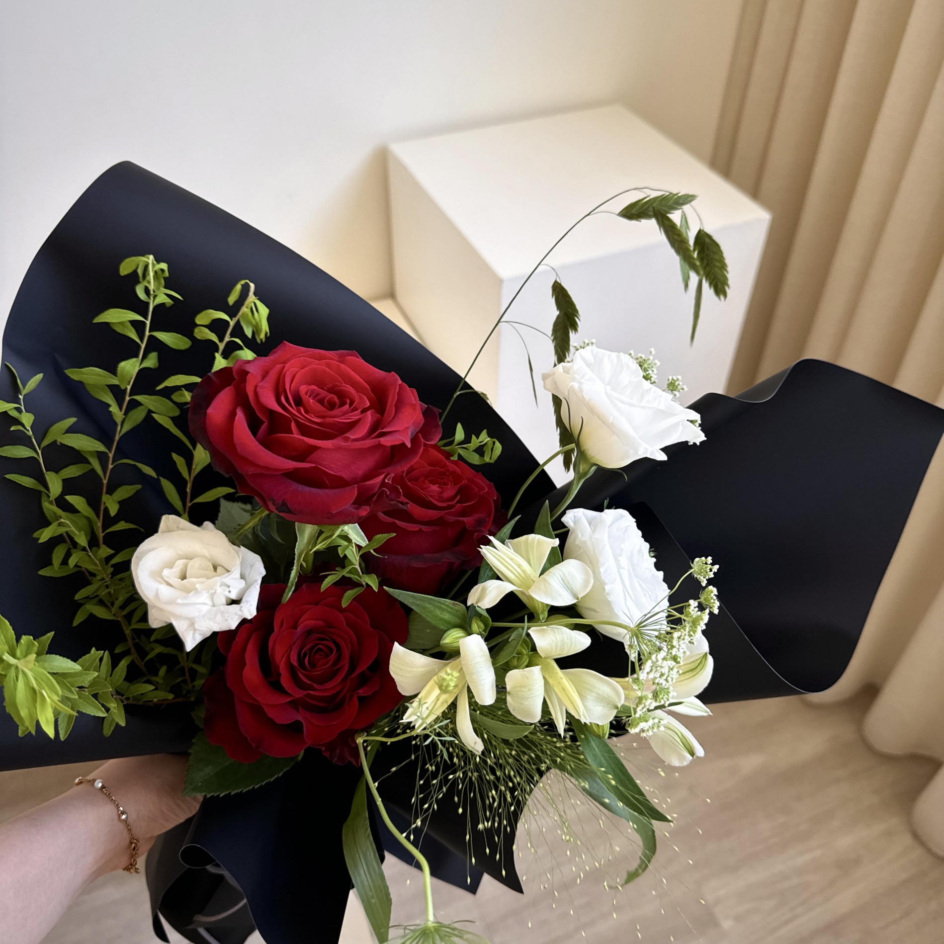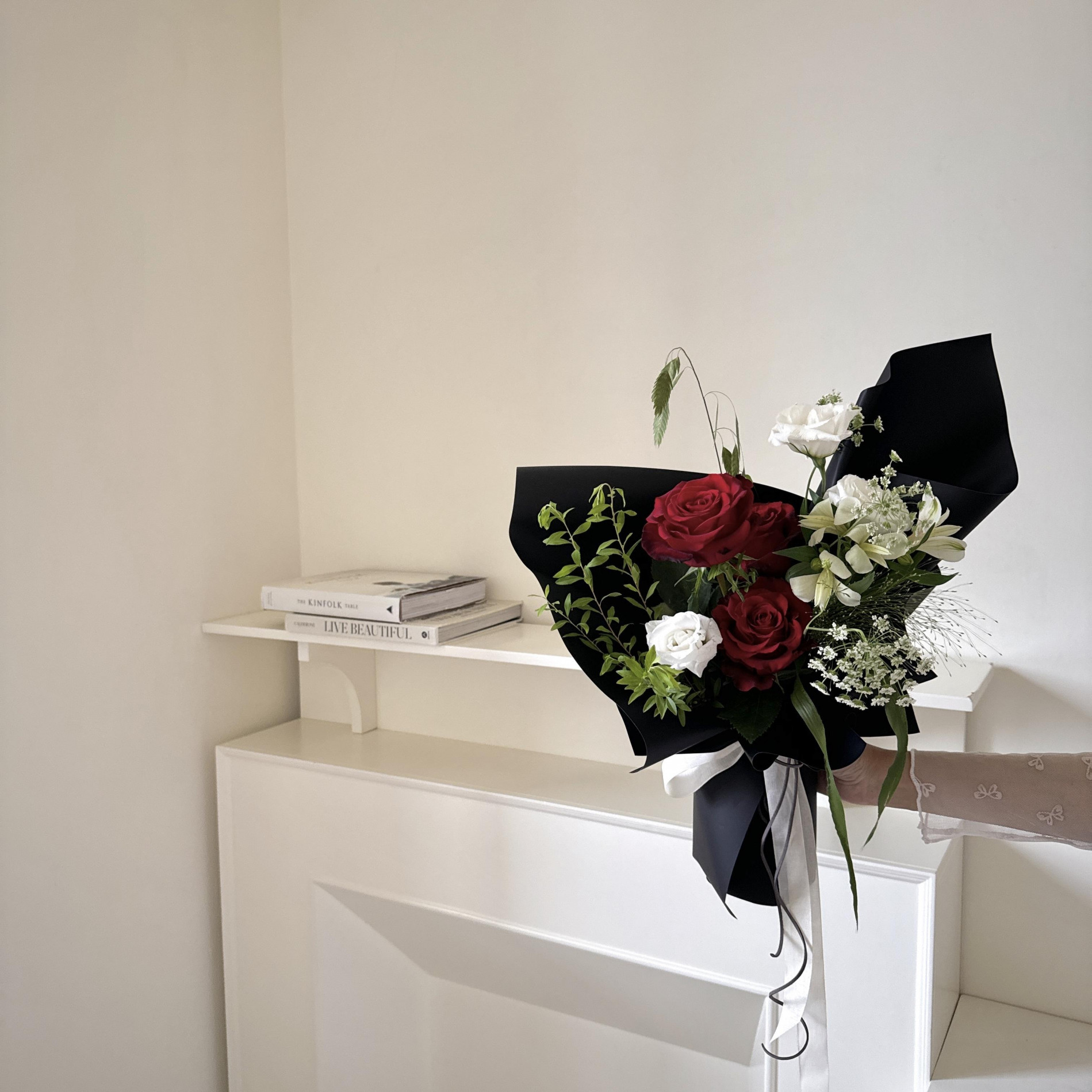 經典的紅玫瑰與神秘的暗夜黑包裝,是具有浪漫情調的一款花束 .ᐟ.ᐟ