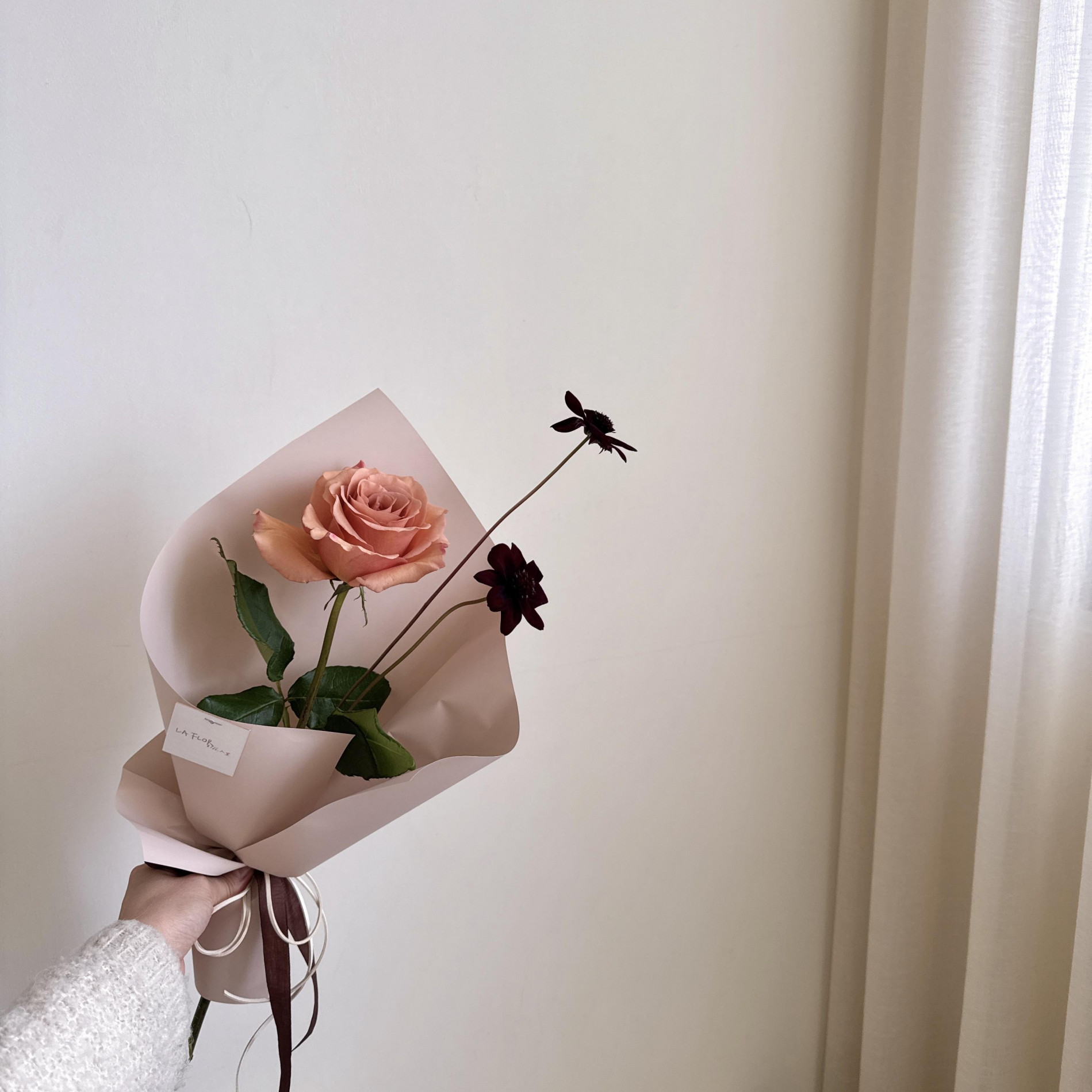 大地色質感粉咖色玫瑰,搭配韓式包裝設計🤎🍂