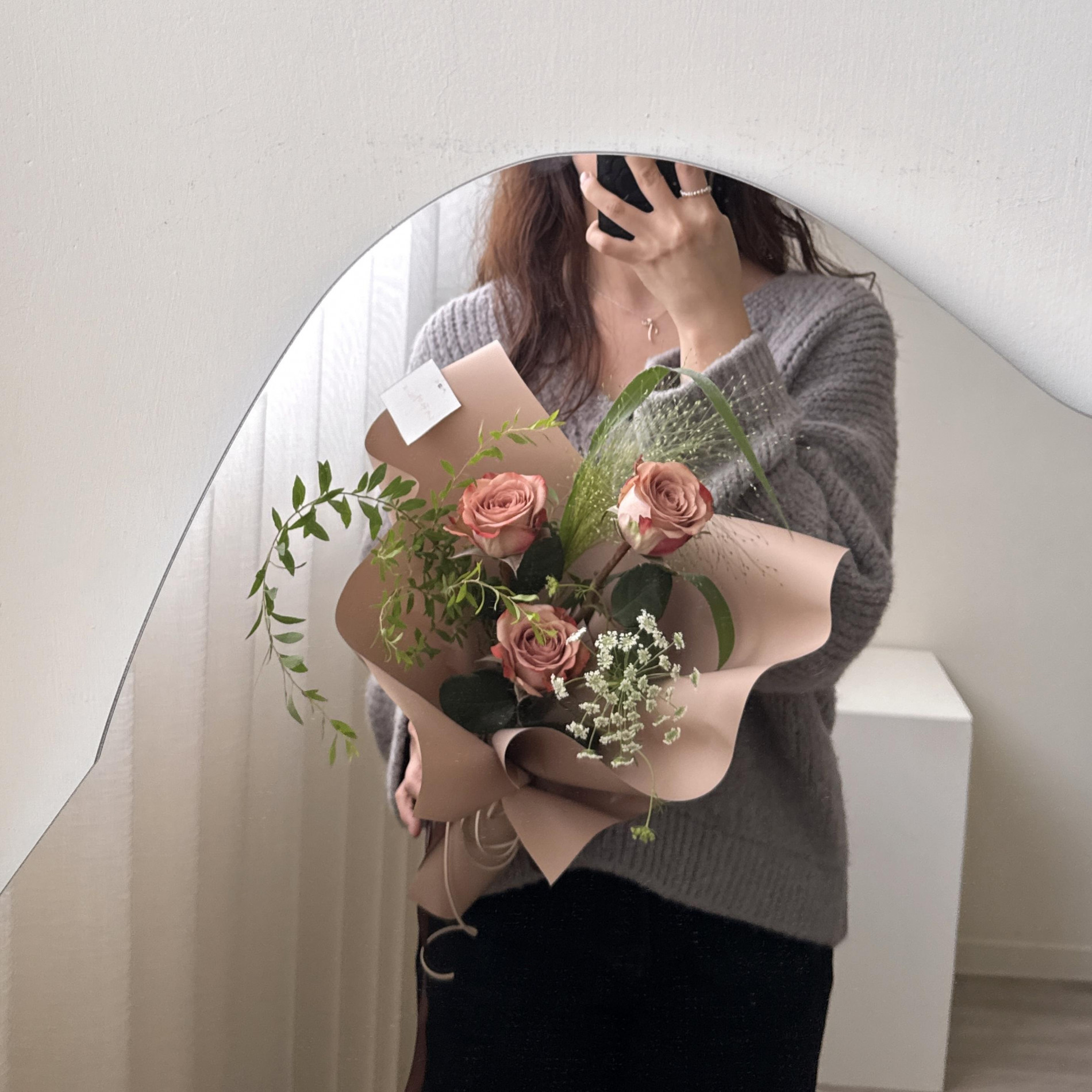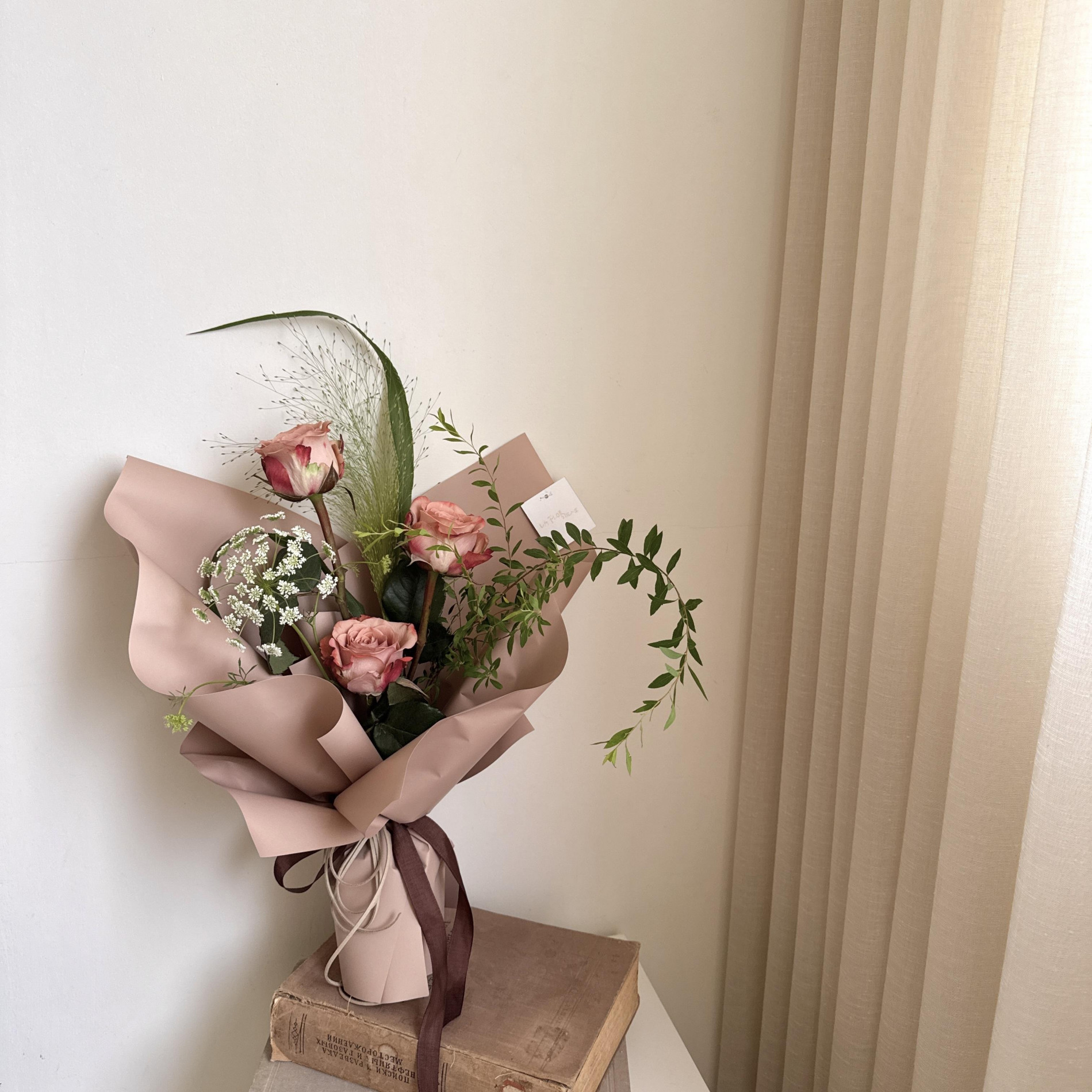 鮮花花材:卡布奇諾玫瑰3朵+3款季節花材
