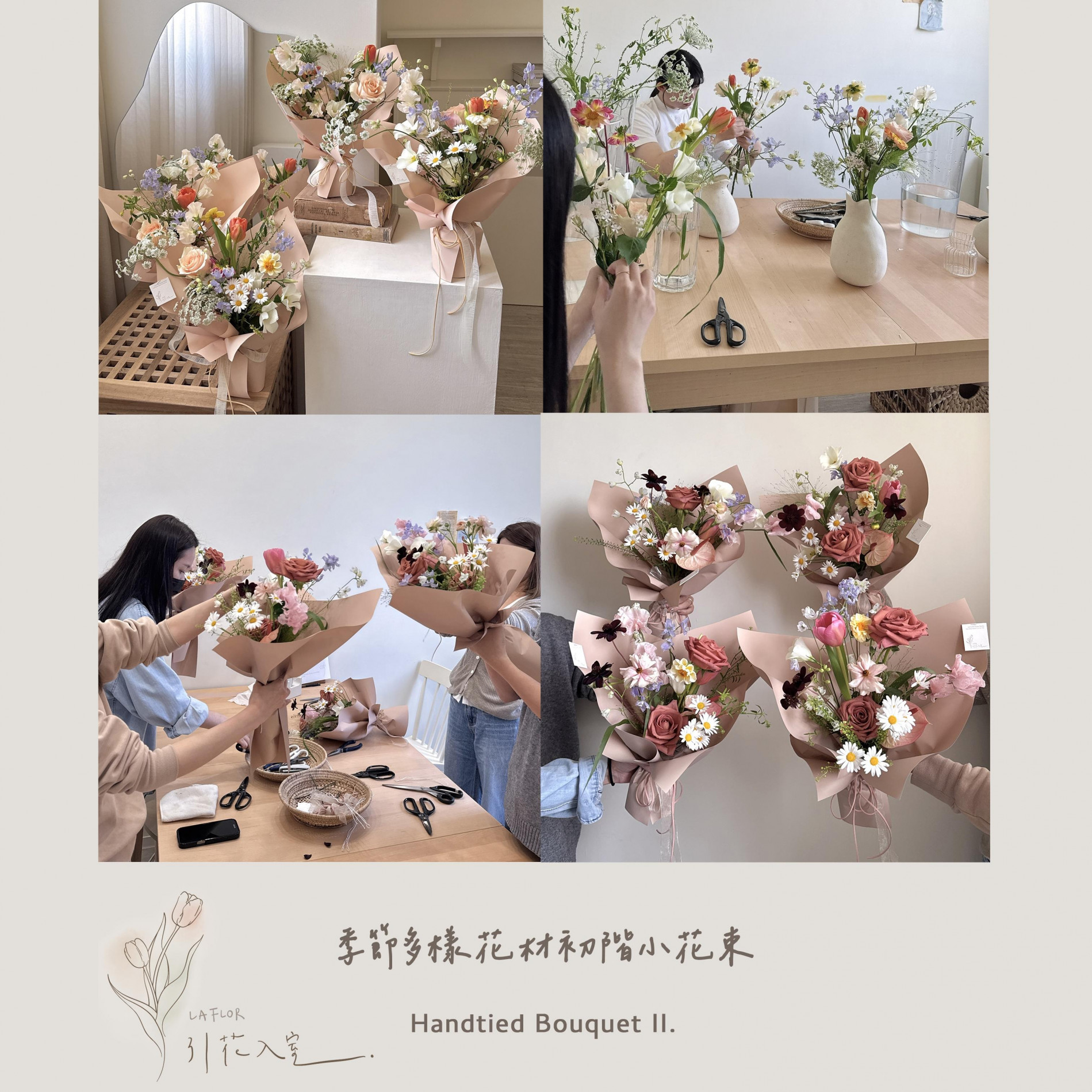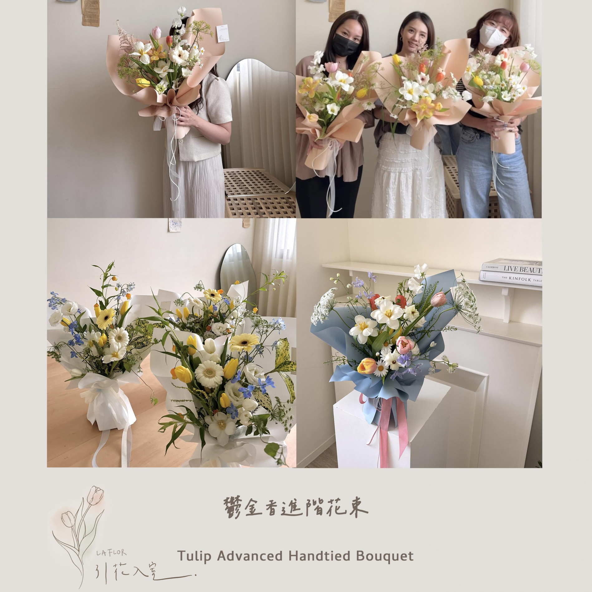 ➀ 基礎+進階花束包裝一日課程:韓式花藝理論課程+初階螺旋花腳玫瑰花束+進階季節大花束(共2個作品)