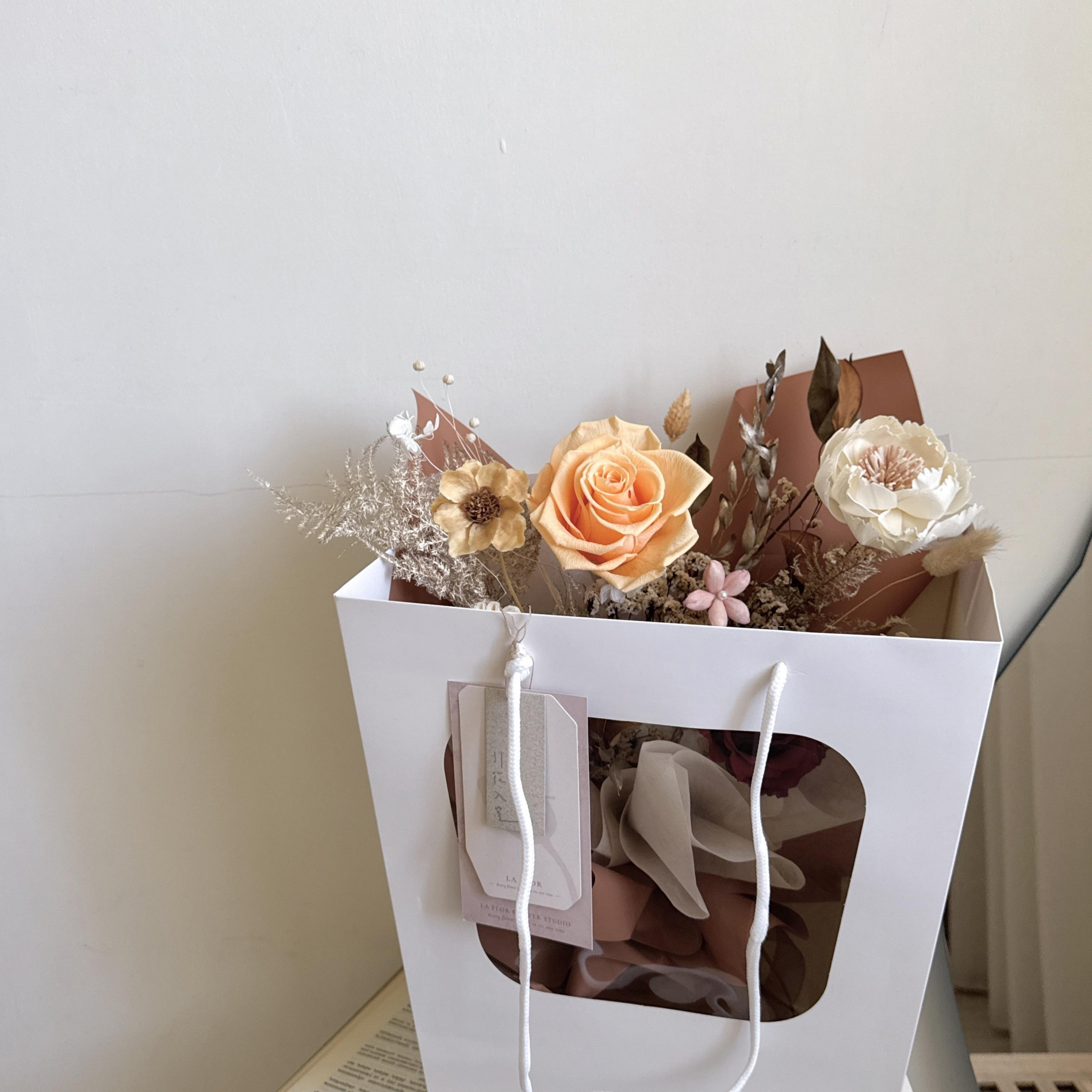 / 乾燥永生花材為鮮花製作而成,每批顏色大小姿態皆不相同,進貨不穩定且有季節性,如花材缺貨將用同色系的相似花材葉材更替,可接受再預訂