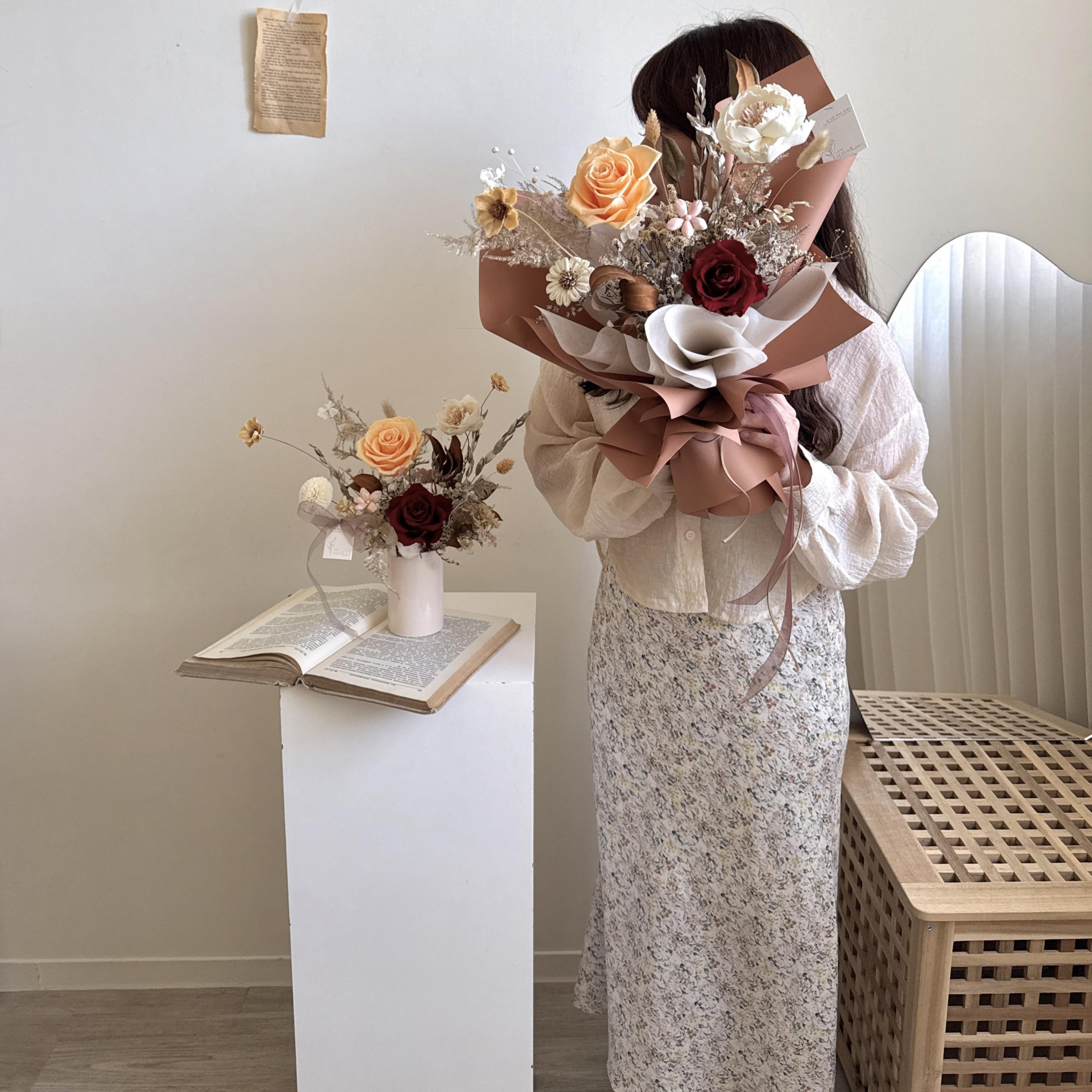 / 乾燥花保存約半年至1年,永生花/不凋花約1-3年,依養護環境而定