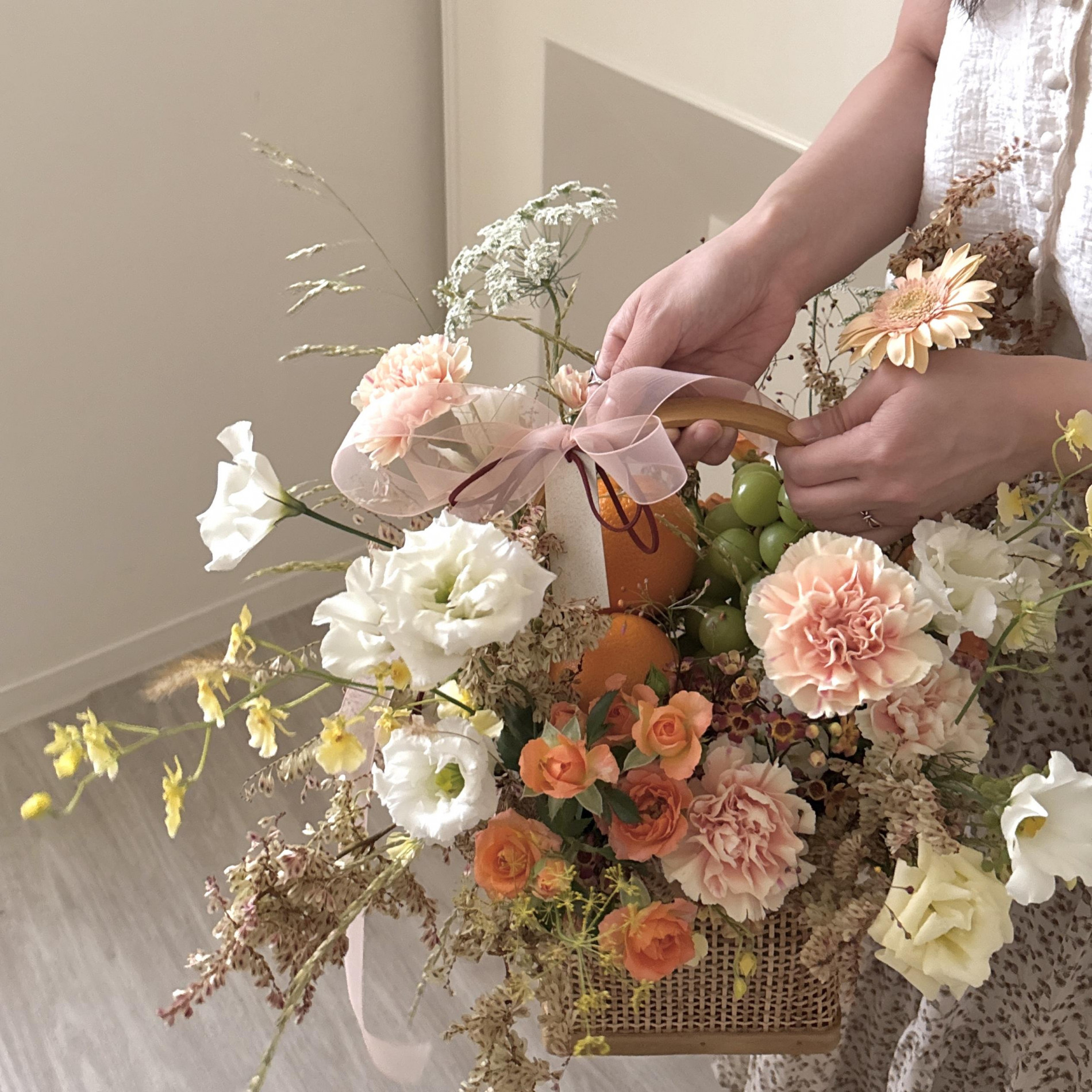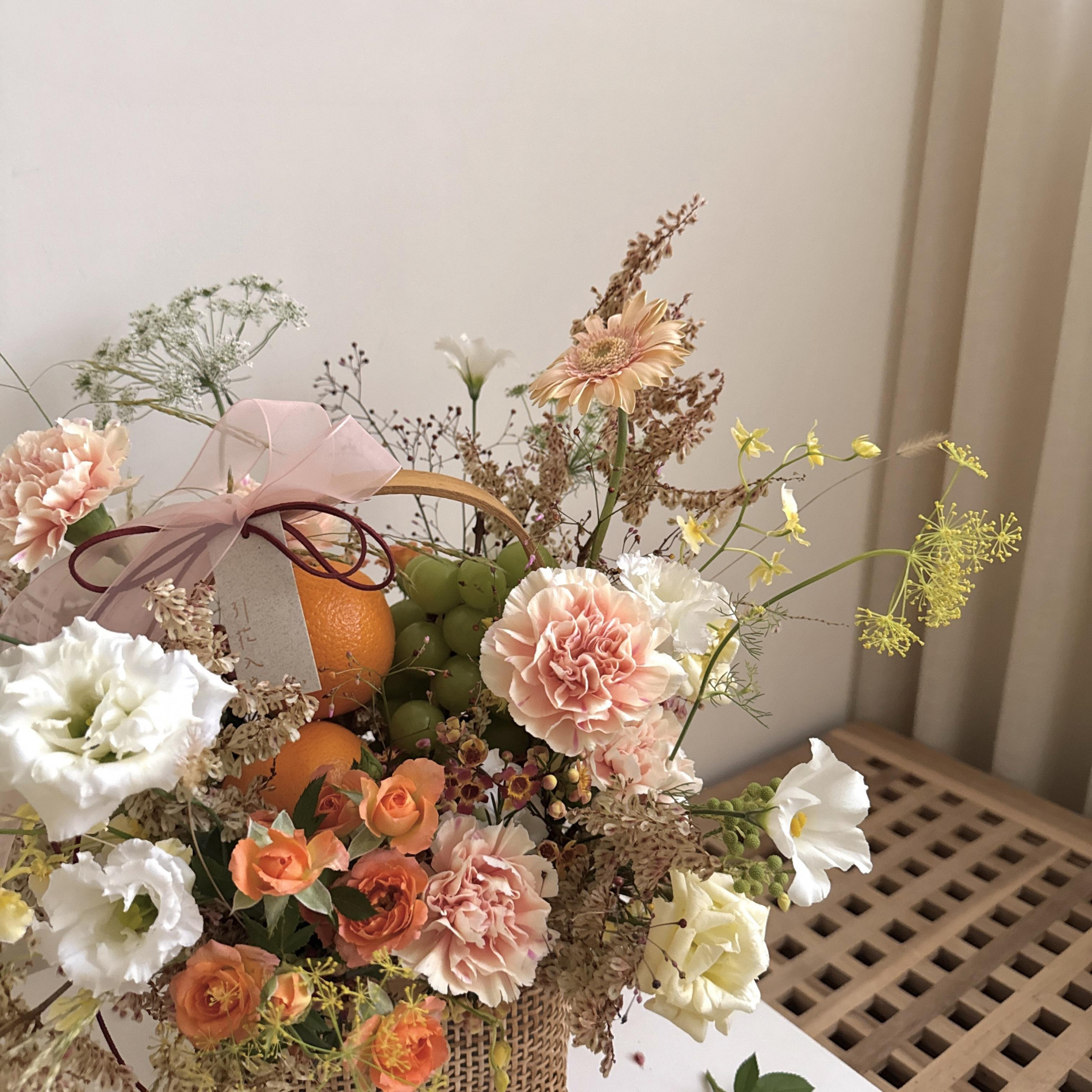 韓式風格的花藝設計,搭配當季新鮮水果 .ᐟ.ᐟ.ᐟ