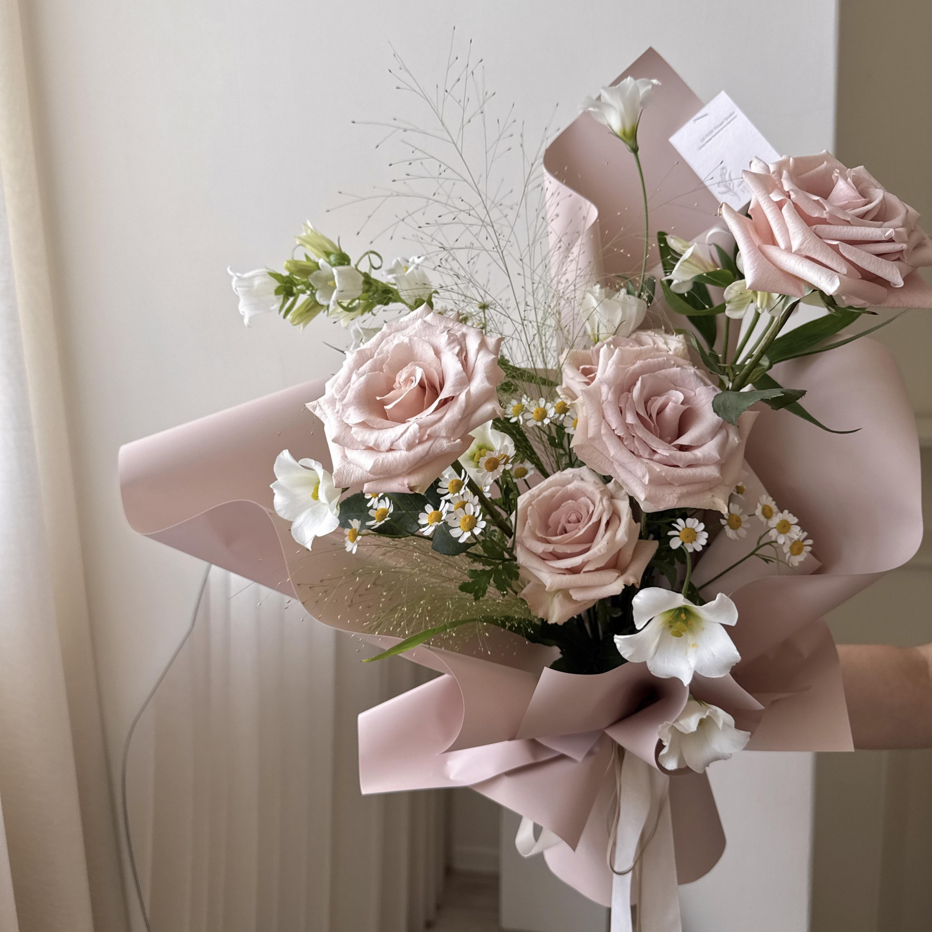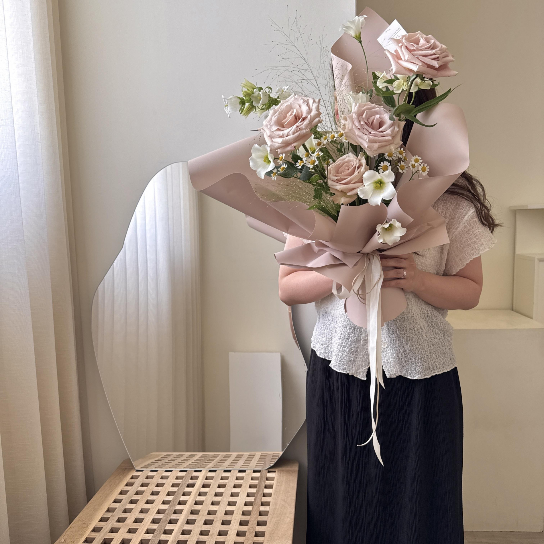 溫柔的淡粉色玫瑰+白色系季節配花,最經典耐看的溫柔氣質款 💐 🤍