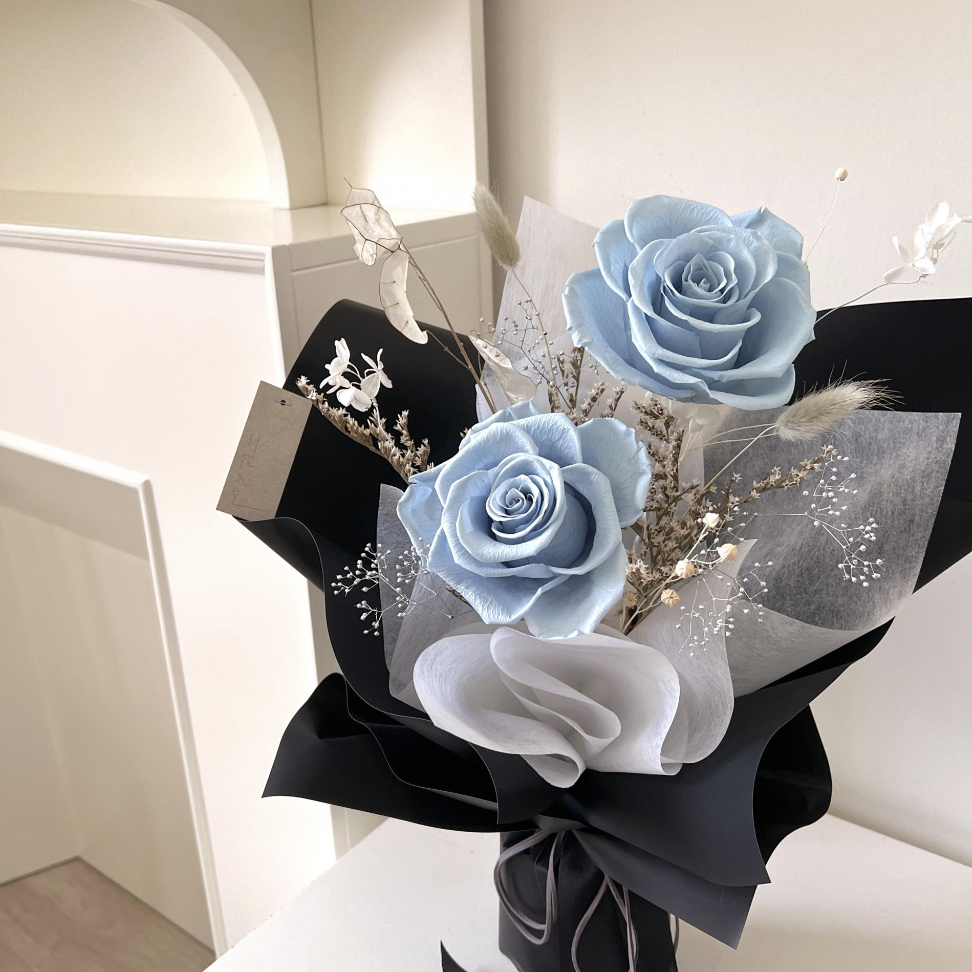 特殊的藍玫瑰,搭配個性黑包裝更凸顯花色的質感藍🩵💙🖤