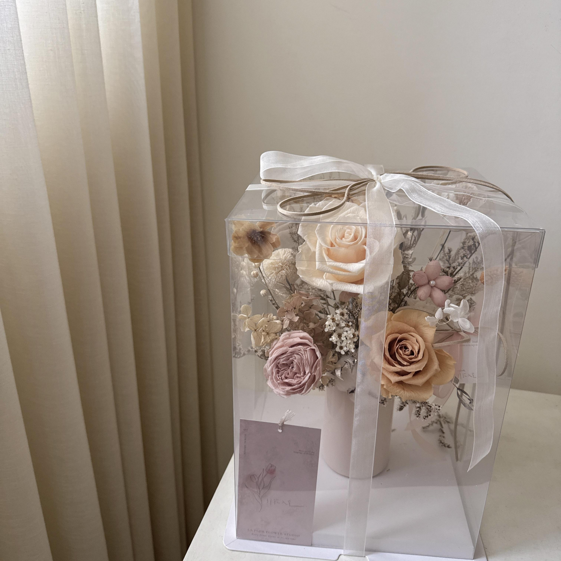 / 乾燥永生花材為鮮花製作而成,每批顏色大小姿態皆不相同,進貨不穩定且有季節性,如花材缺貨將用同色系的相似花材葉材更替,可接受再預訂