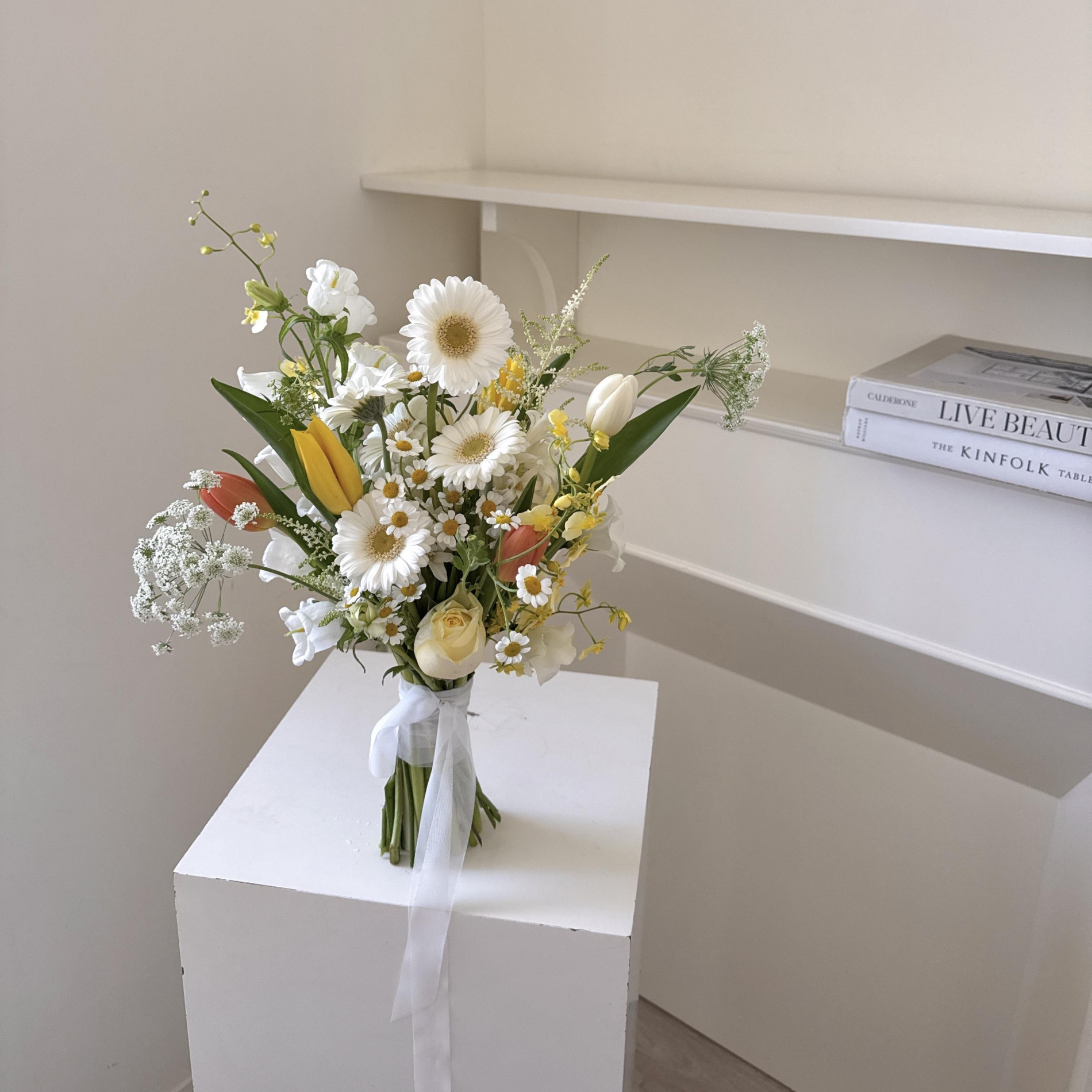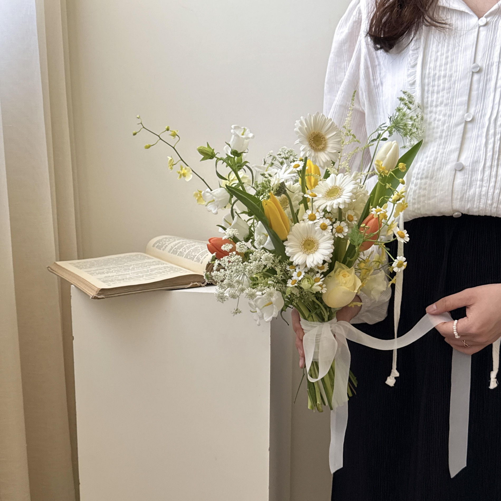 花材:白黃橘鬱金香+季節花材
