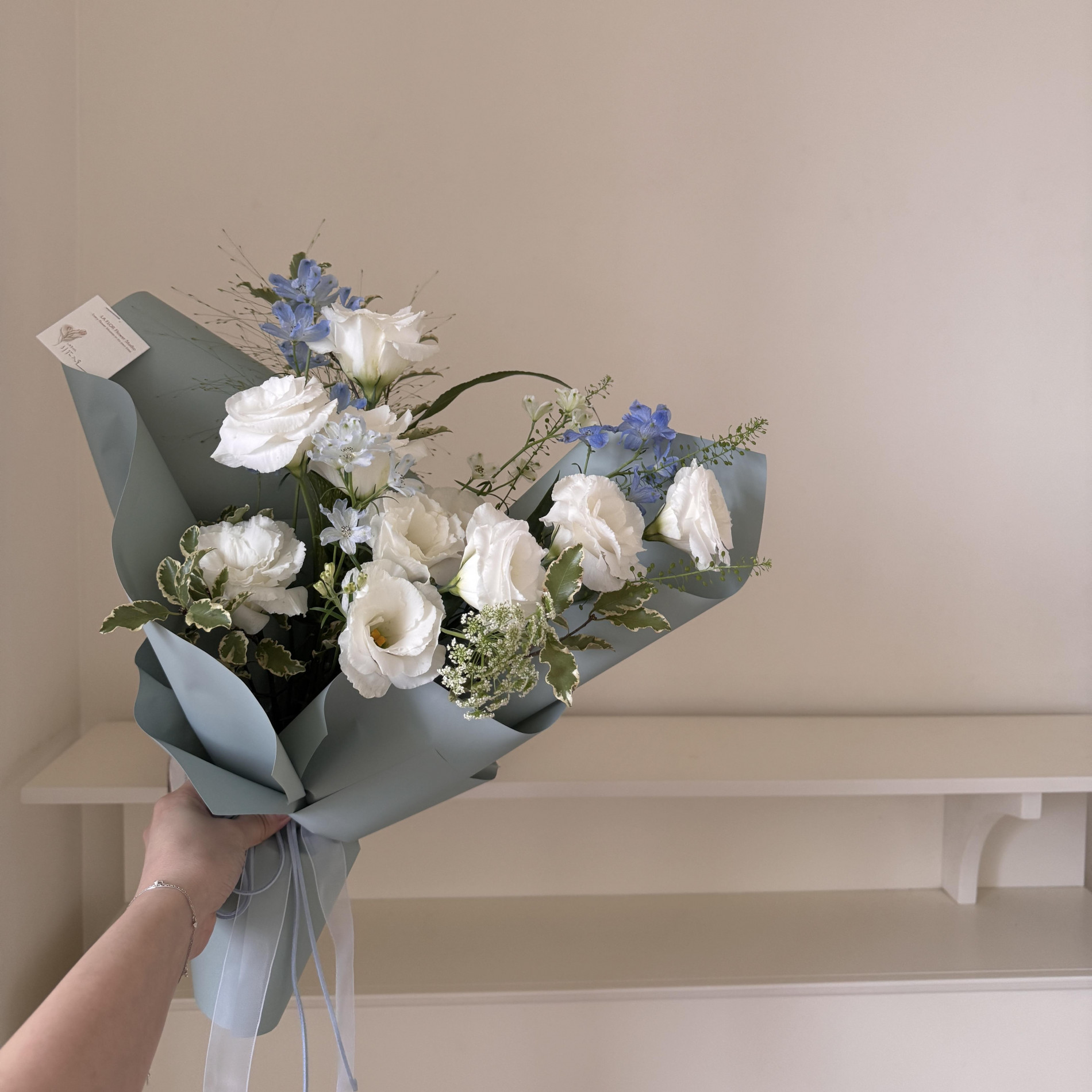 清爽的白桔梗與藍色的結合,譜出一束藍調花束🎼🩵
