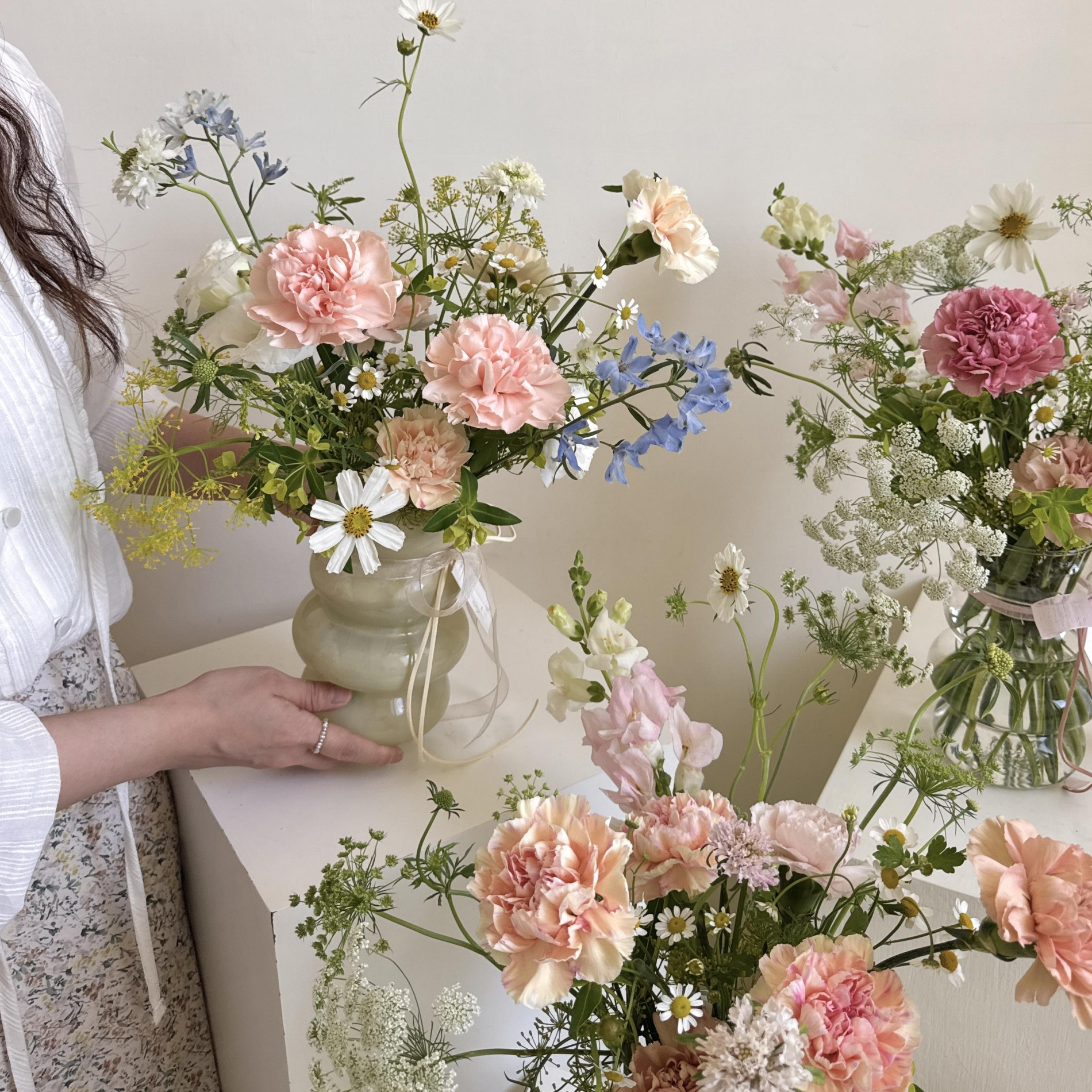 教大家如何用一個一支剪刀和一個花瓶,設計出空氣感、層次感和豐富線條感的韓式瓶花
