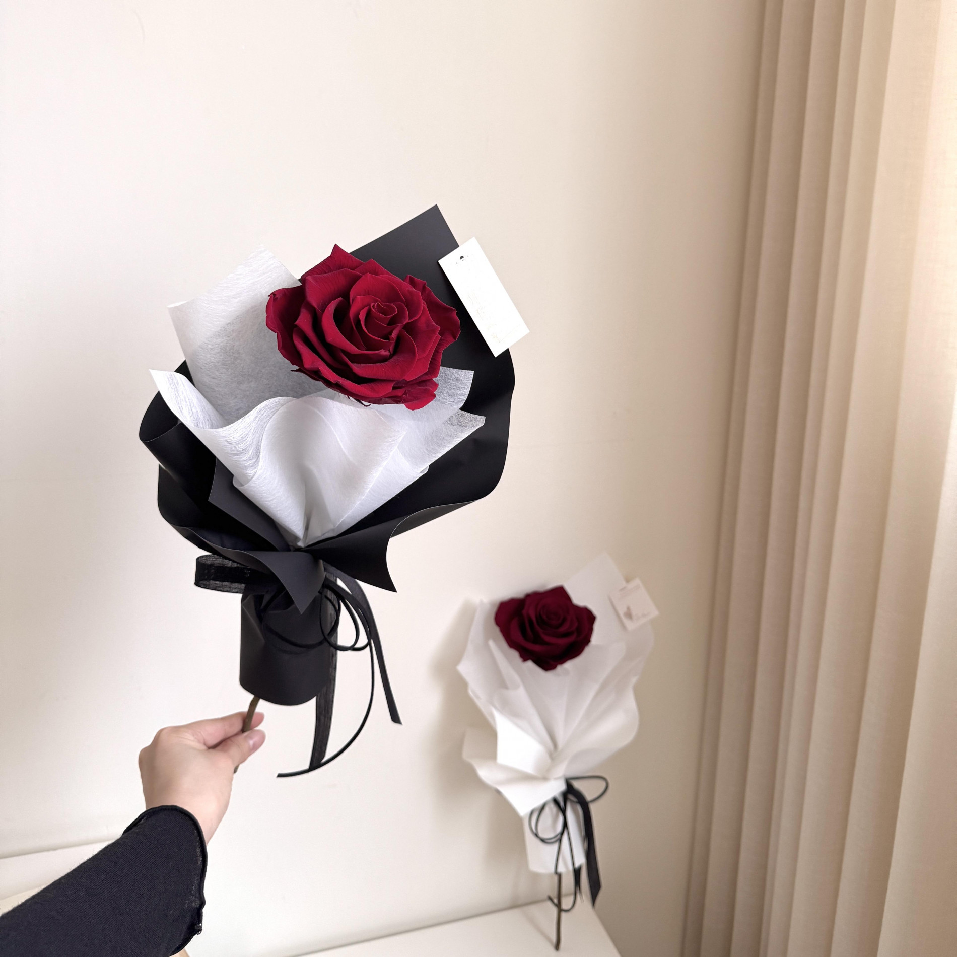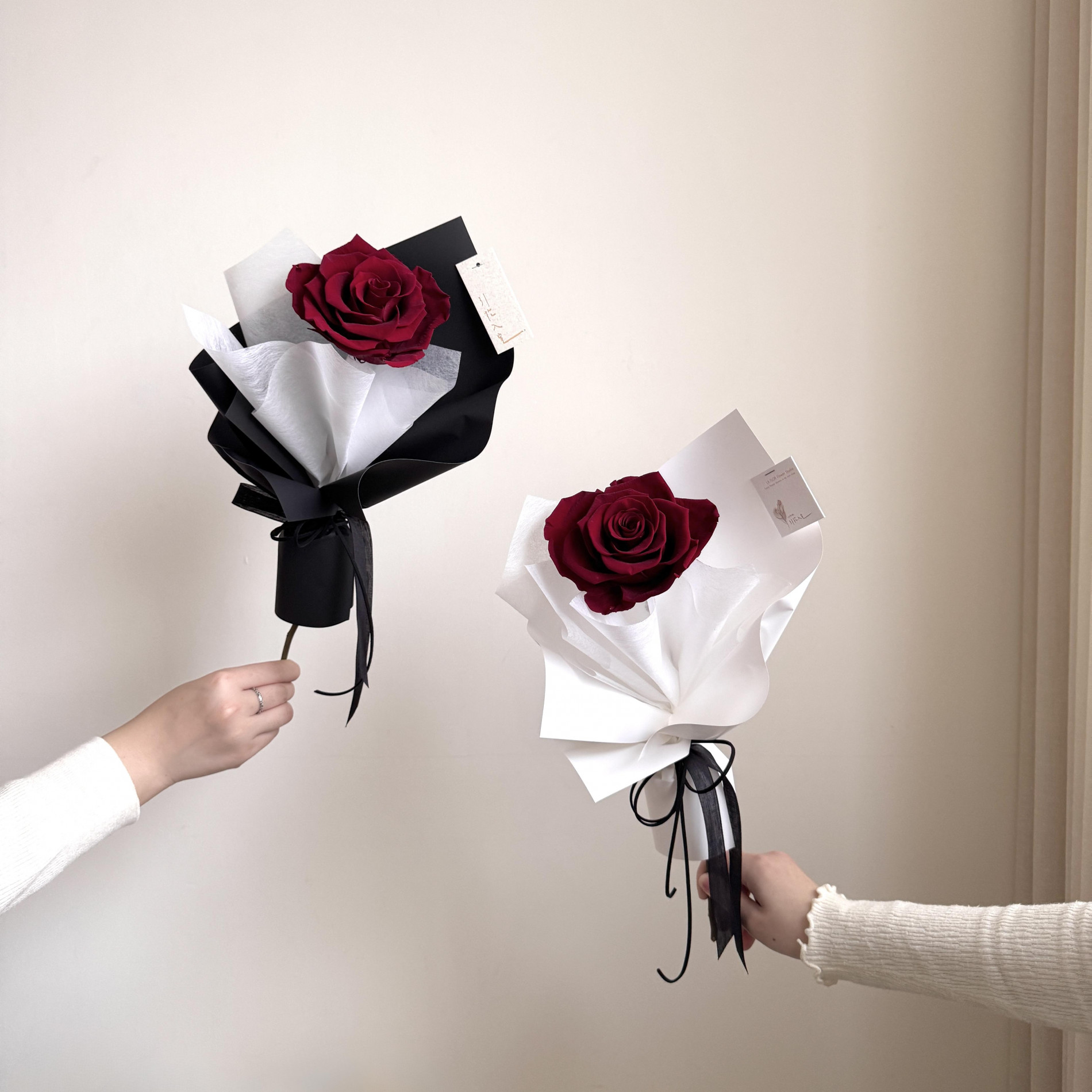 紅玫瑰搭配最經典的黑/白包裝,不會出錯的浪漫!