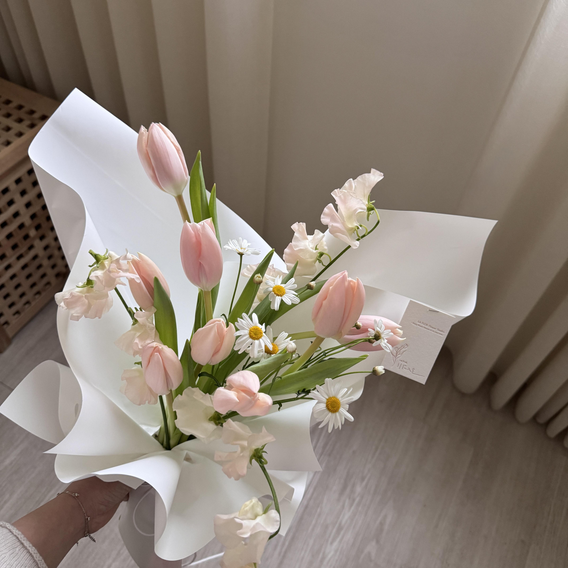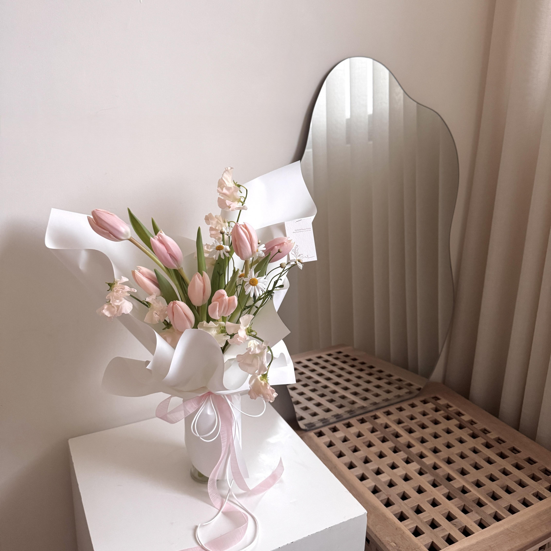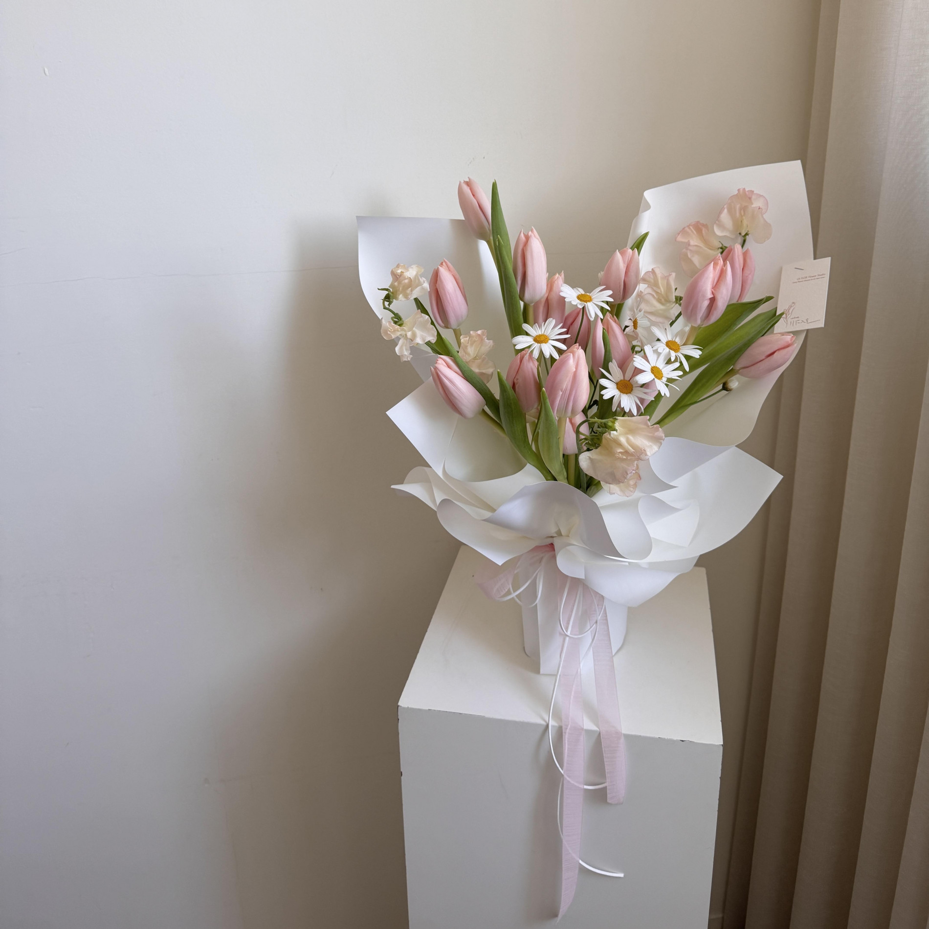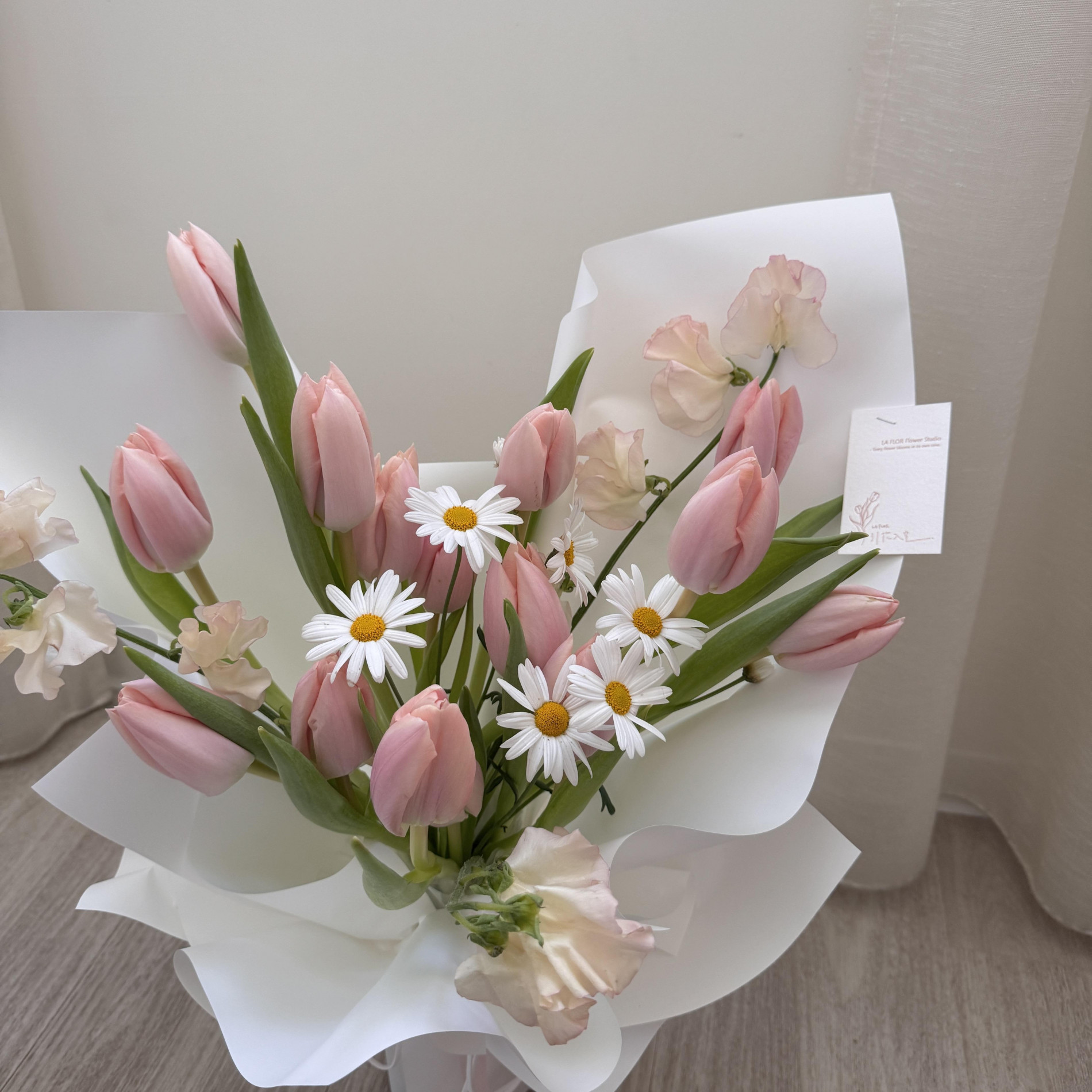 少女最愛的杏粉鬱金香,誰能抗拒這夢幻的粉白色花束呢!