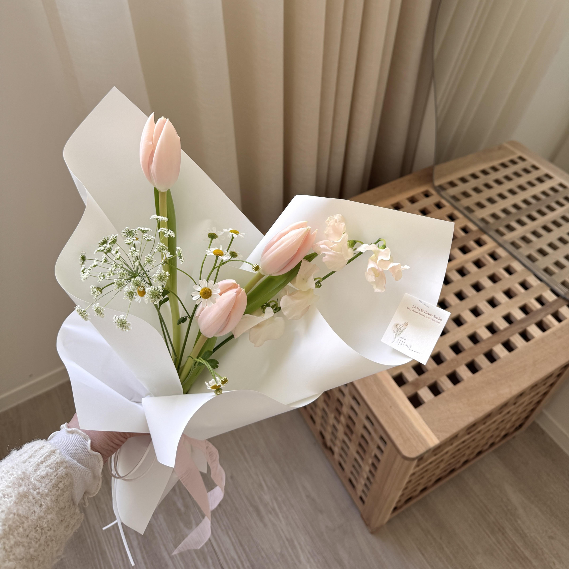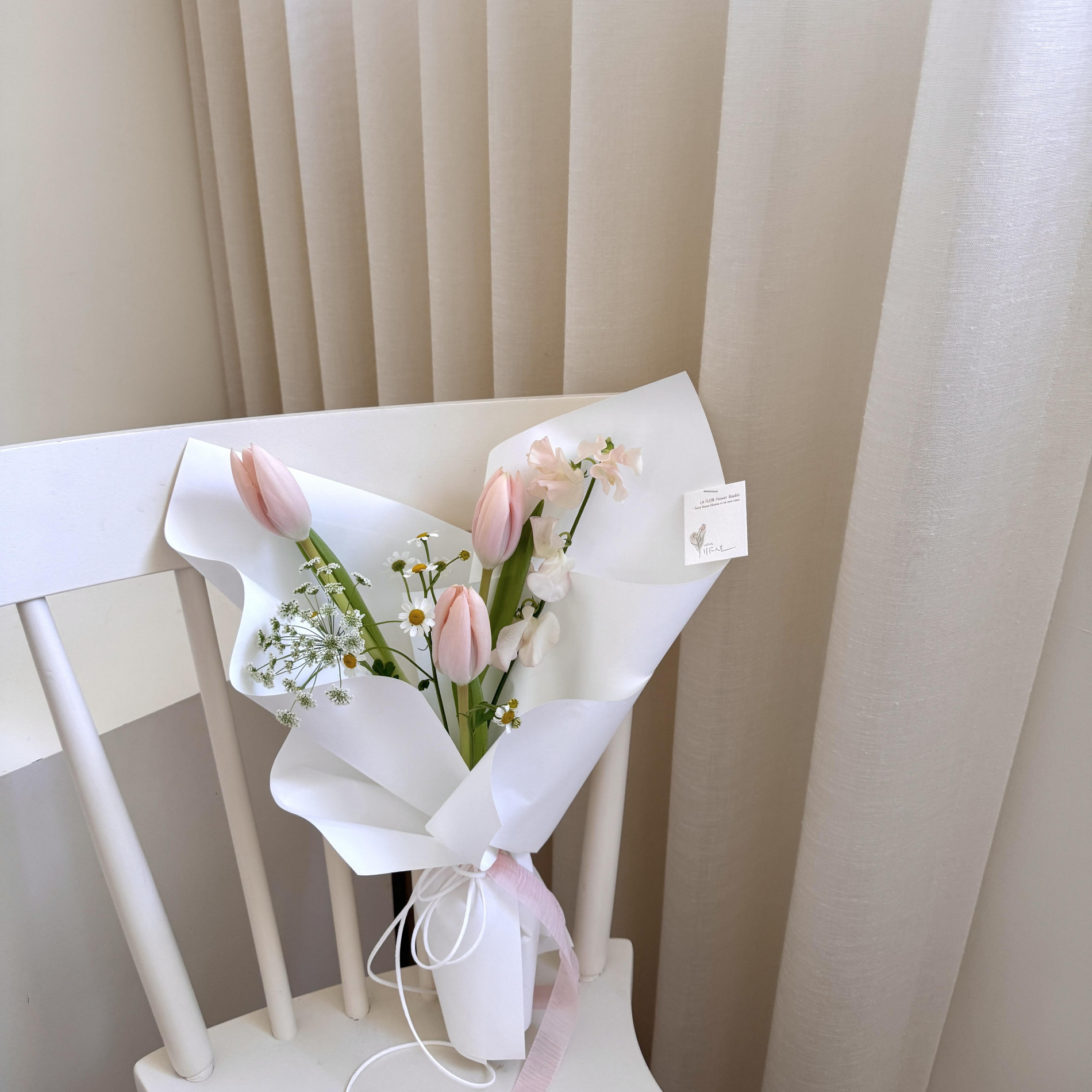 少女最愛的杏粉鬱金香,誰能抗拒這夢幻的粉白色花束呢!