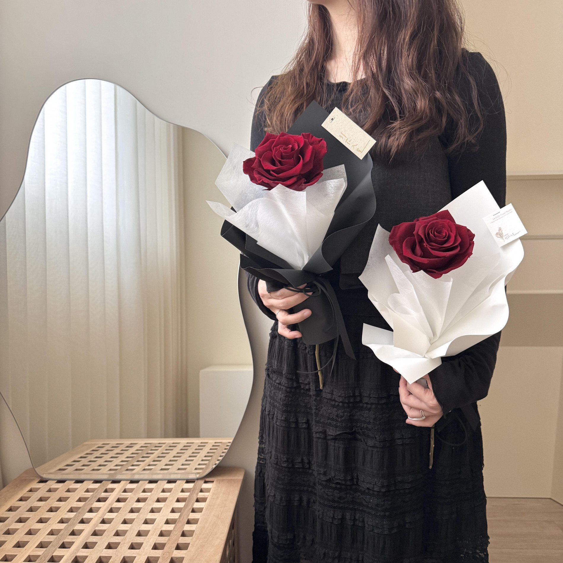 紅玫瑰搭配最經典的黑/白包裝,不會出錯的浪漫!
