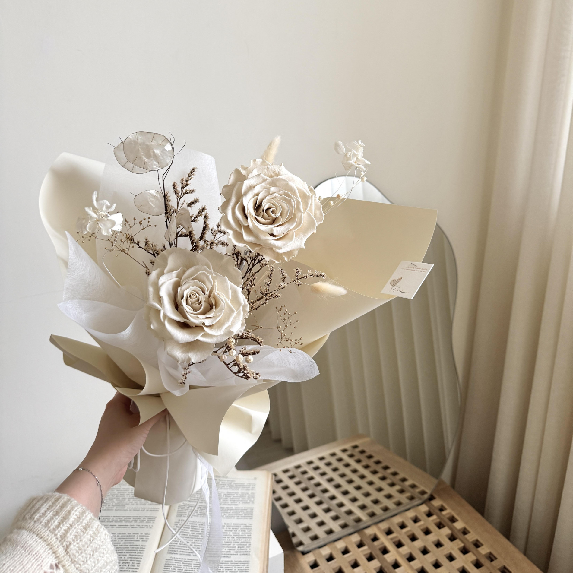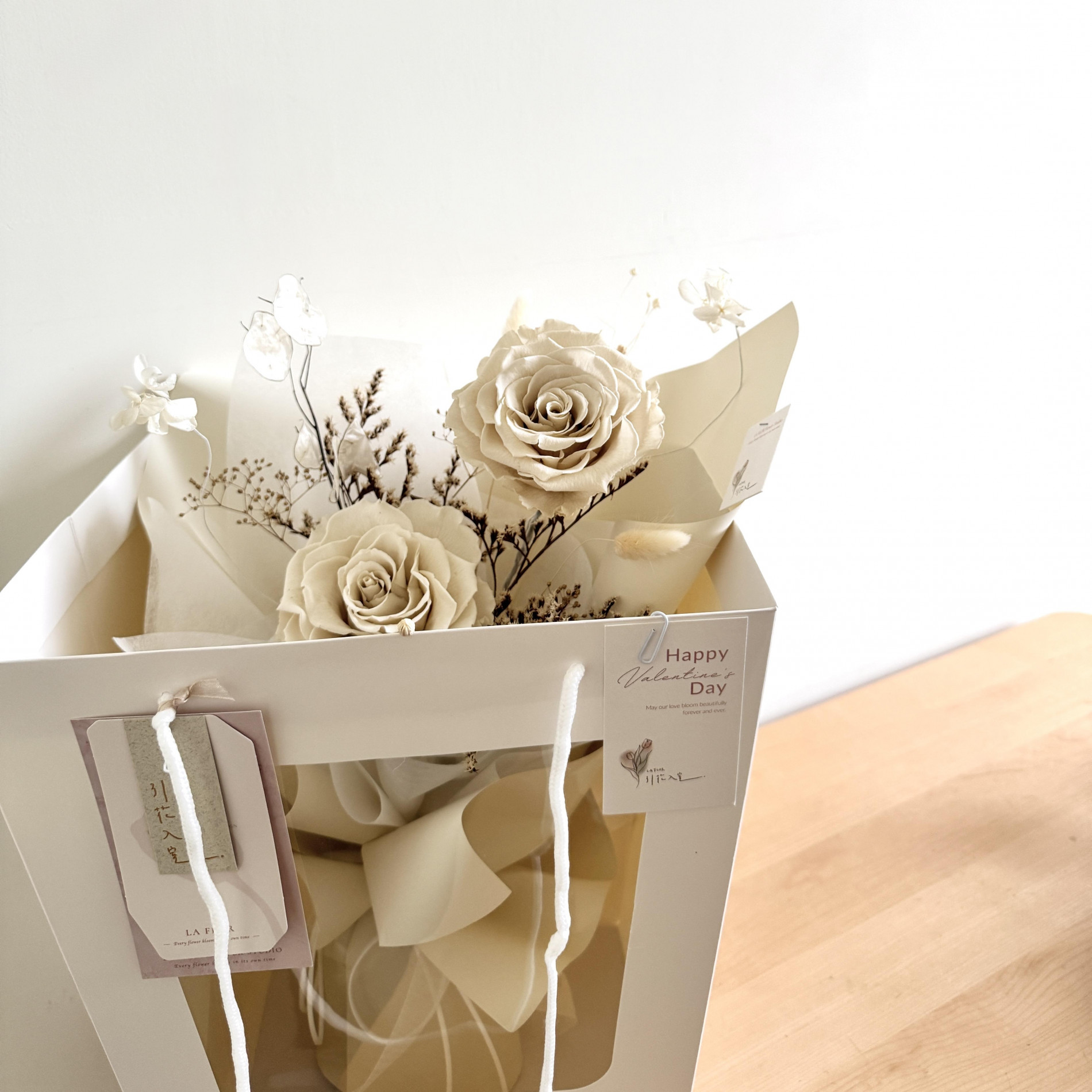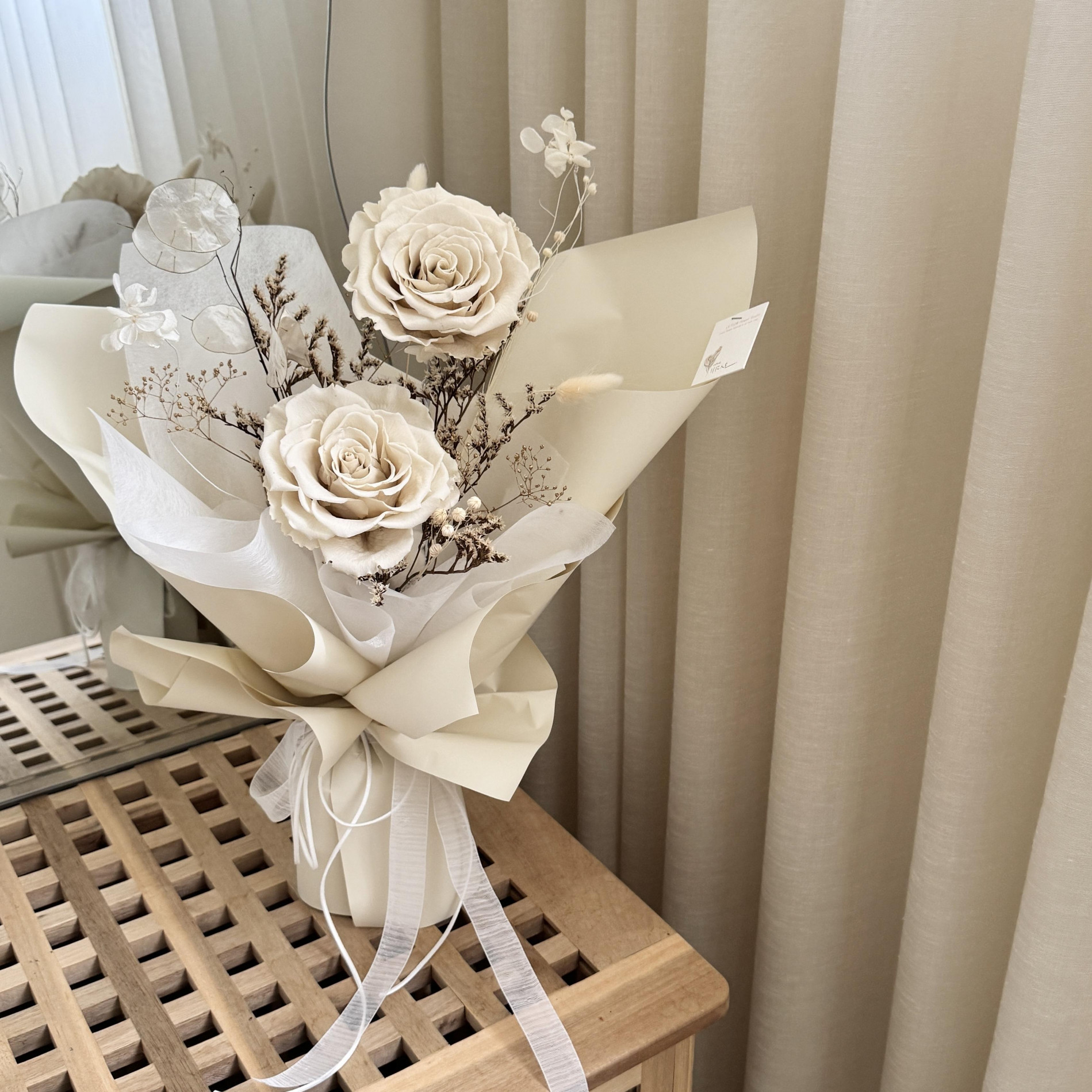 永生乾燥花材:2朵永生玫瑰花+多樣乾燥永生配花