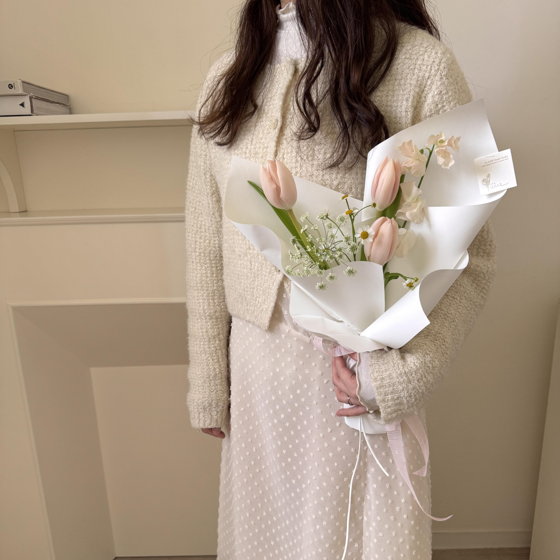 鮮花花材:3朵粉色鬱金香+3款季節配花
