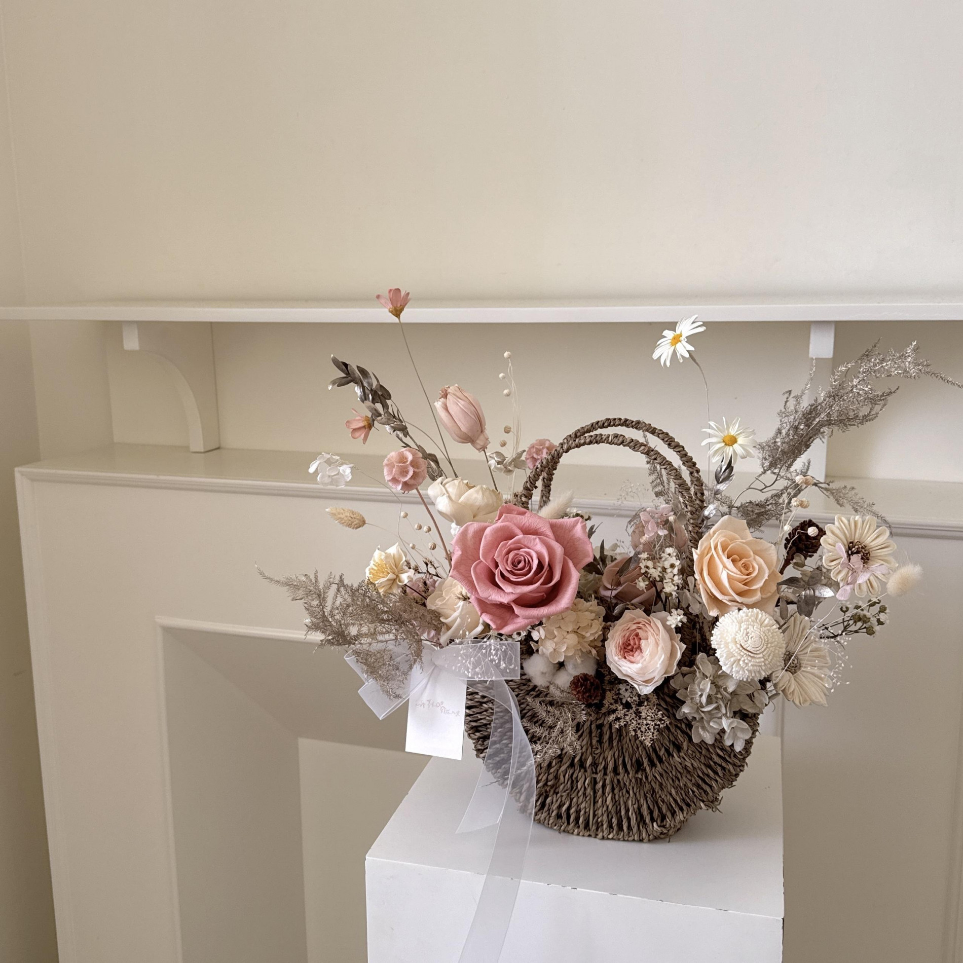 以自然感、層次感和空氣感著稱的韓式風格,帶有輕盈和靈動感的質感花藍。